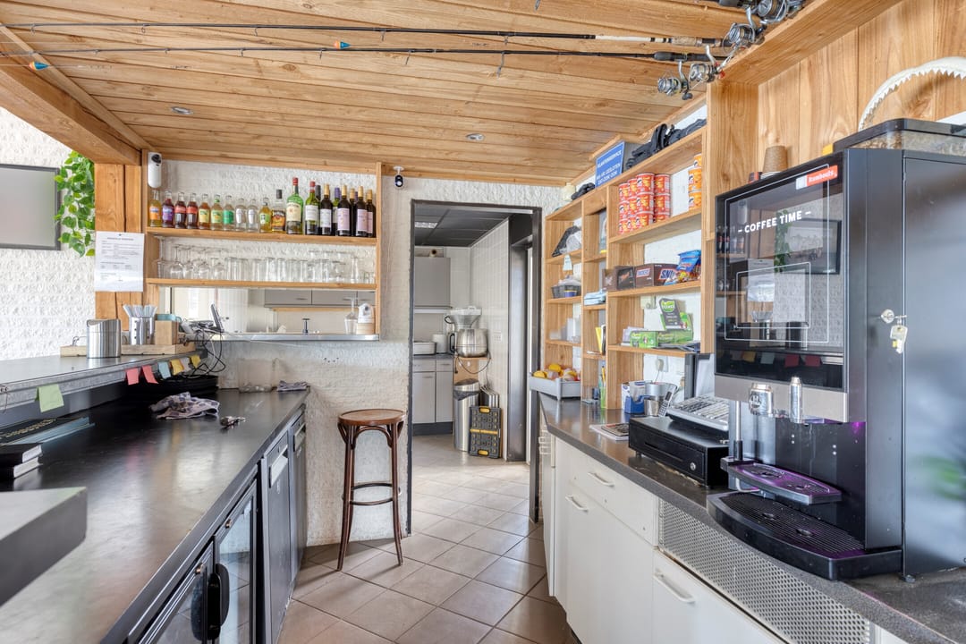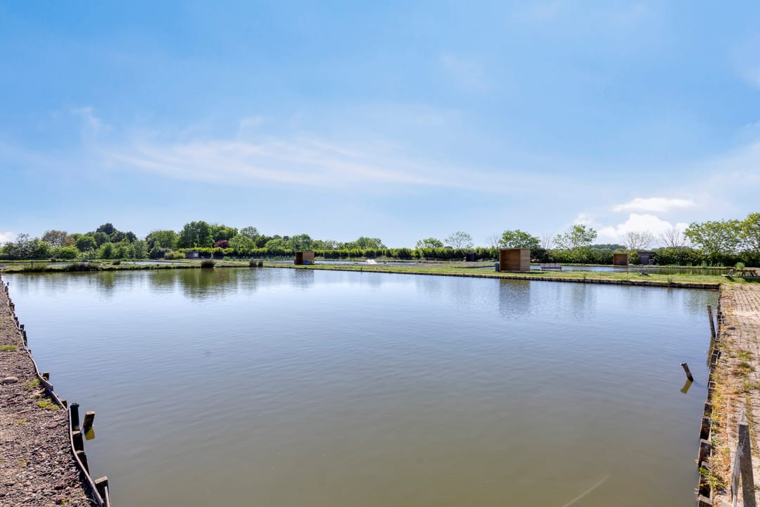 Alle faciliteiten voor een directe exploitatie zijn op het terrein aanwezig: van professionele horecakeuken tot kantine met panoramisch uitzicht over de vijvers, van sanitair gebouw nabij de viszones tot loods/ schoonmaakplaats, schuilhokjes en een ruim parkeerterrein.