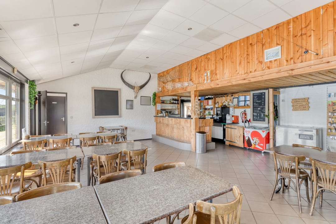 Het restaurant annex vergaderlocatie is in 1996 gebouwd. Het is opgetrokken uit stalen spanten, spouwmetselwerk met een vrije overspanning, kunststof deuren - kozijnen en geïsoleerde dakpanplaten. Het restaurant is uitgerust met kantine, bar, keukentje, vaste koelcel en dubbele toiletruimte. Verder zijn er overkappingen en terras aanwezig, waardoor de beschikbare ruimte optimaal is benut. Er is een contract voor tankgas (propaan). Het hele object is uitgerust met een camera- en alarmsysteem.