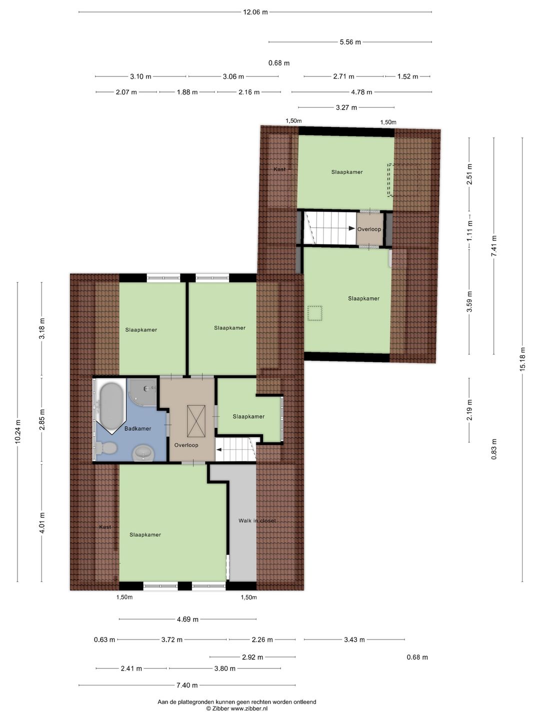 Via een vaste trap komt u op de verdieping met overloop en vier slaapkamers (waarvan één met dakkapel, één met een walk in closet en alle met airco). De badkamer heeft een ligbad, douche, toilet en badkamermeubel. De zolderverdieping is met een vlizotrap bereikbaar.