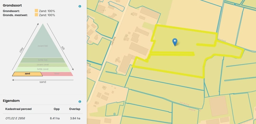 De bodemsoort betreft gedeeltelijk Hoge zwarte enkeerdgronden; leemarm en zwak lemig fijn zand (zEZ21). Daarnaast Veldpodzolgronden; leemarm en zwak lemig fijn zand (Hn21) en Vlakvaaggronden; lemig fijn zand (Zn23). De wettelijke grondsoort is zand. Het vigerende bestemmingsplan is het Bestemmingsplan “Agrarisch Buitengebied Ede 2012” van de gemeente Ede, vastgesteld op 4 oktober 2012 met de bestemming Agrarisch en de gebiedsaanduidingen reconstructiewetzone: verwevingsgebied en landbouwontwikkelingsgebied.