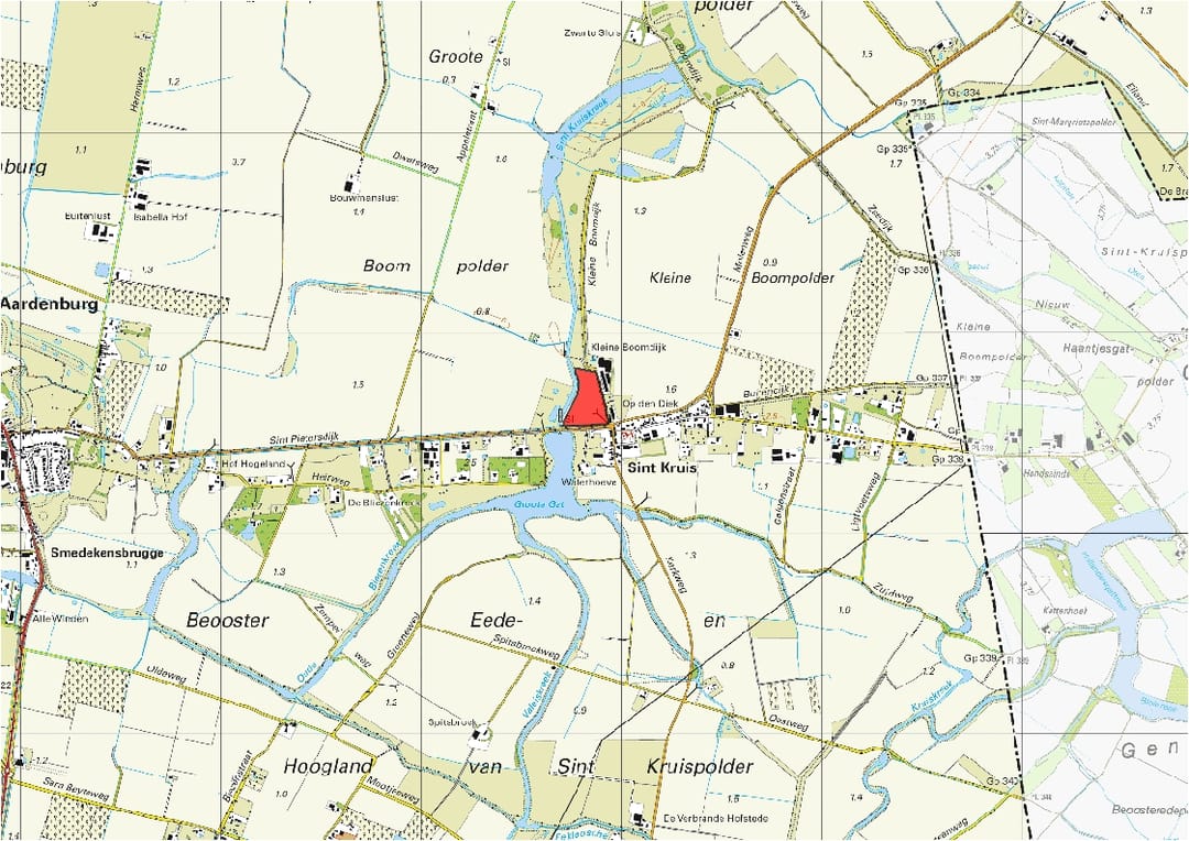 Het perceel is gelegen in Sint Kruis, een klein dorpje in nabij Aardenburg (gemeente Sluis) in Zeeuws- Vlaanderen, nabij de landsgrens tussen België en Nederland.