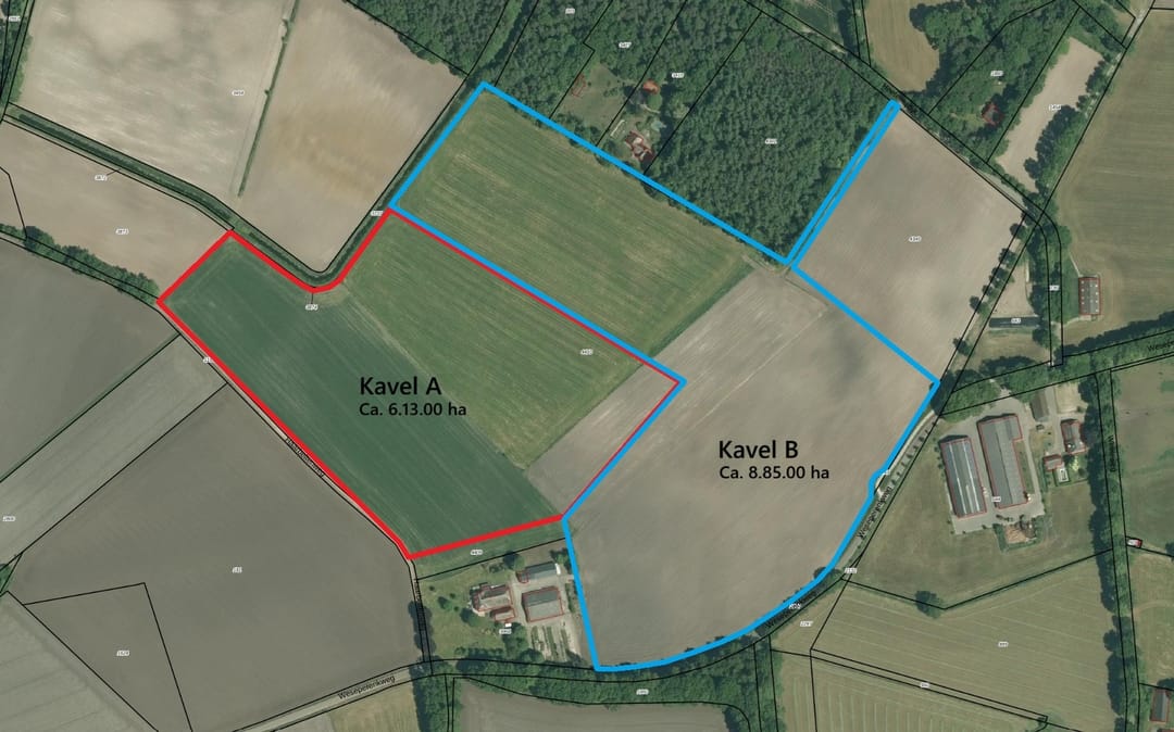 Kavel C is het gehele kadastrale perceel groot 14.98.00 ha.