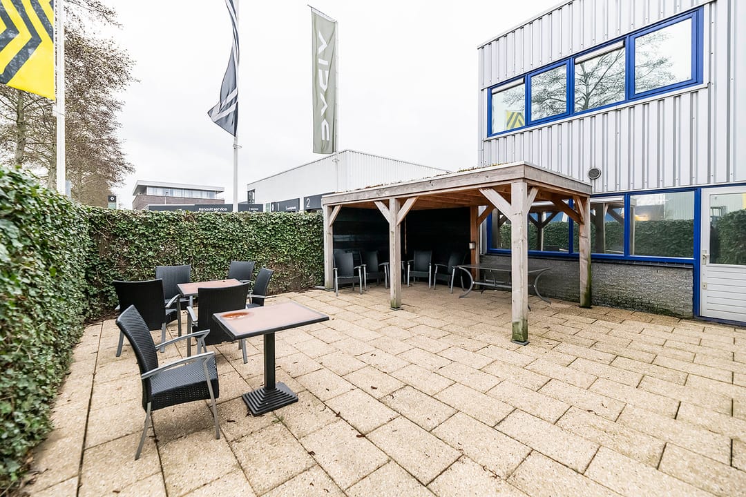 - vanuit de kantine deur naar buitenterras met veranda.