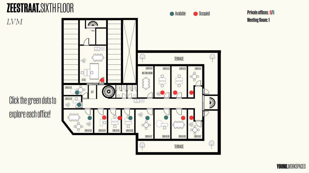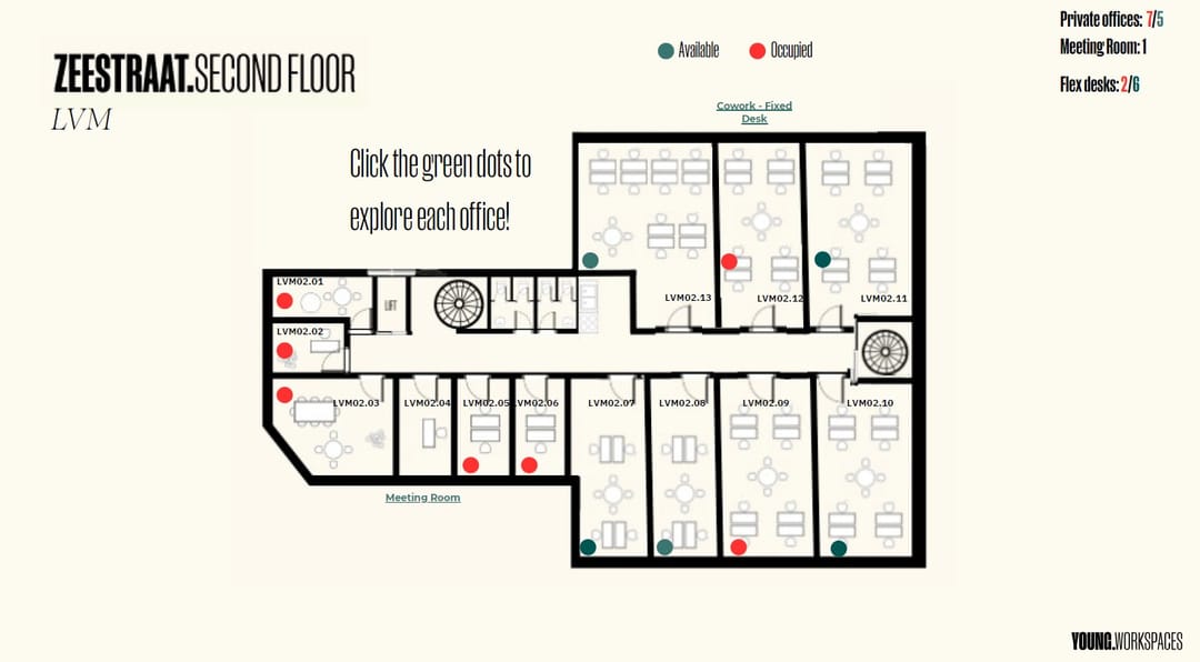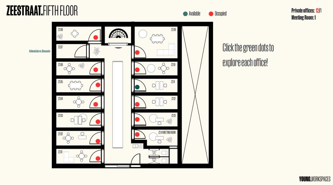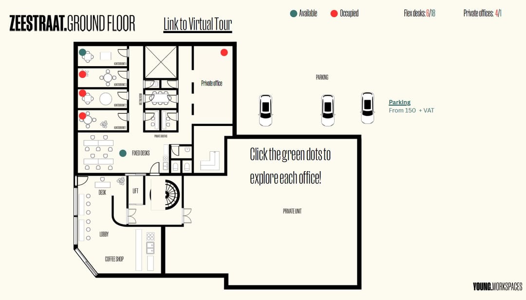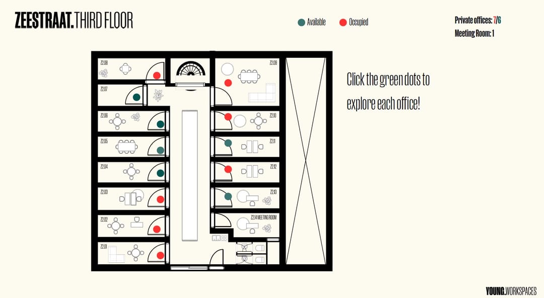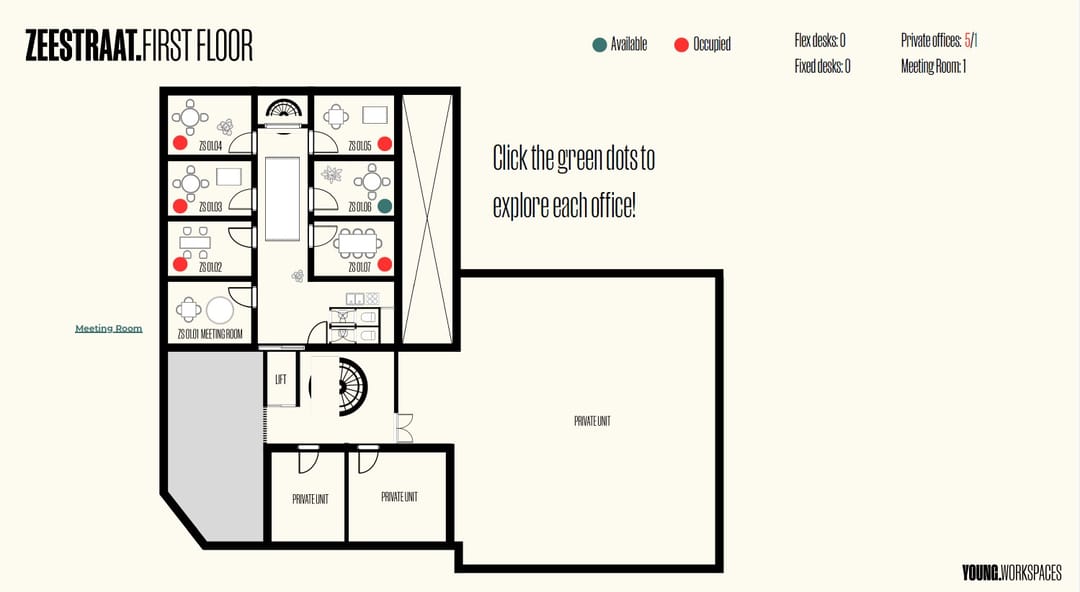 Bent u op zoek naar een representatieve en betaalbare kantoorruimte in het centrum van Den Haag? Dan is deze unit aan de Zeestraat 100 een uitstekende keuze. Deze lichte en efficiënte kantoorruimte maakt deel uit van een professioneel beheerd pand van YOUNG Workspaces — een snelgroeiend netwerk van hoogwaardige werklocaties voor ondernemers, scale-ups en creatieve professionals .Er zijn units beschikbaar vanaf 10 m² tot en met 50 m². Meerdere kantoren kunnen worden samengevoegd voor grotere teams of organisaties. Dankzij de flexibele indeling en contractvoorwaarden sluit de ruimte perfect aan op verschillende werkvormen.