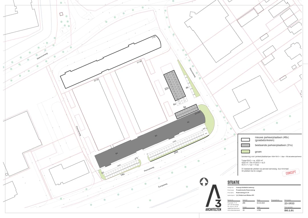4 tot 9 eigen parkeerplaatsen per Businessloft gelegen voor of achter het complex. Aanvullend gratis openbare parkeervakken aan de straatzijde.