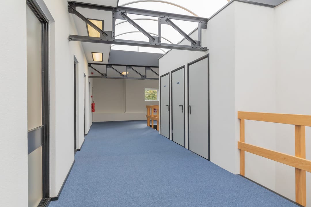 - (Grotendeels) Systeemplafond met geïntegreerde verlichtingsarmaturen;