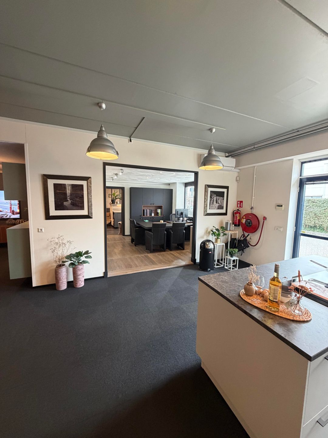 - indeling in kantoorunits door middel van systeemwanden;