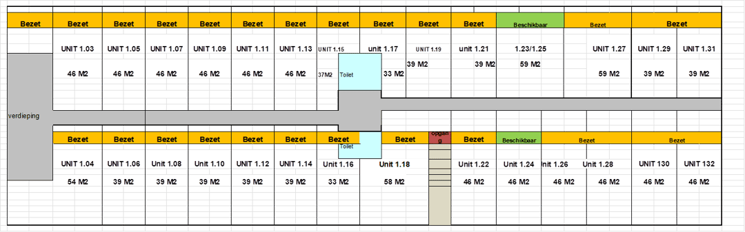 Er zijn kantoorruimtes beschikbaar vanaf circa 46 m². Afhankelijk van de beschikbaarheid kunnen deze units onderling worden gekoppeld, waardoor grotere kantoorruimtes gerealiseerd kunnen worden.