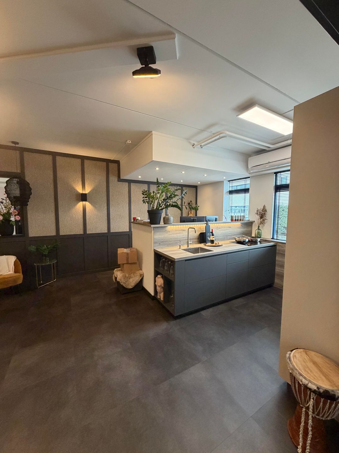 - systeemplafond met verlichtingsarmaturen;