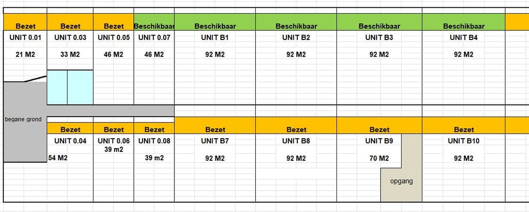 Op dit moment zijn de bedrijfsunits 0.07, B1, B2, B3 en B4 aan elkaar gekoppeld. Het behoort tot de mogelijkheden om verschillende units met elkaar te combineren of om deze separaat te huren, in nader overleg met de verhuurder.