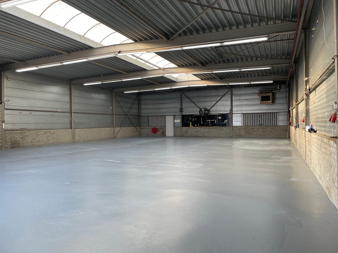 - Lichtstraten, krachtstroom, betonvloer, heater, toilet en pantry