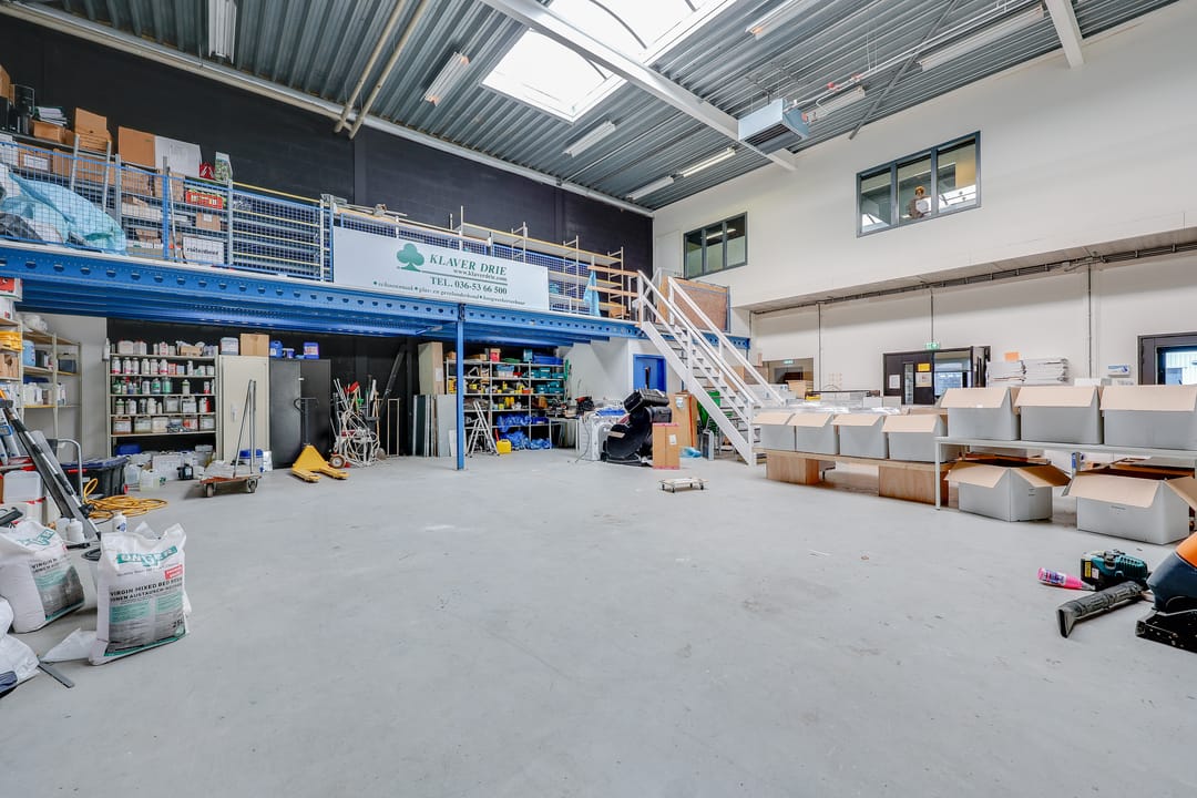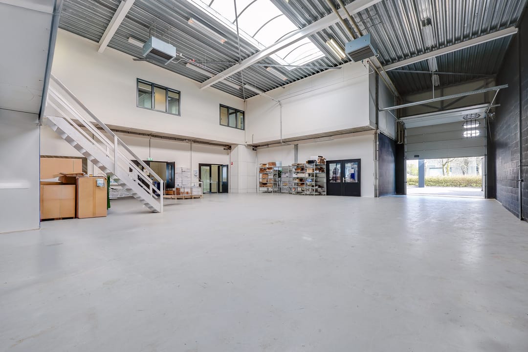 - Lichtstraten, overheaddeuren, betonvloer, toilet, pantry, mechanische ventilatie, inbouwarmaturen en te openen ramen