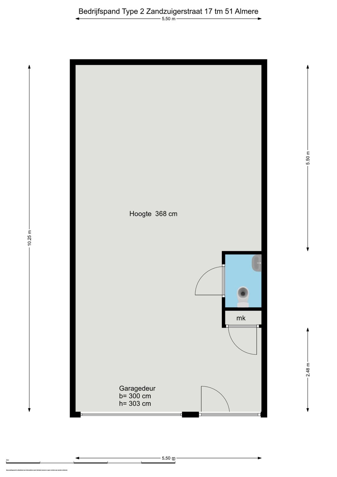 - Overheaddeuren, betonvloer, toilet en pantry