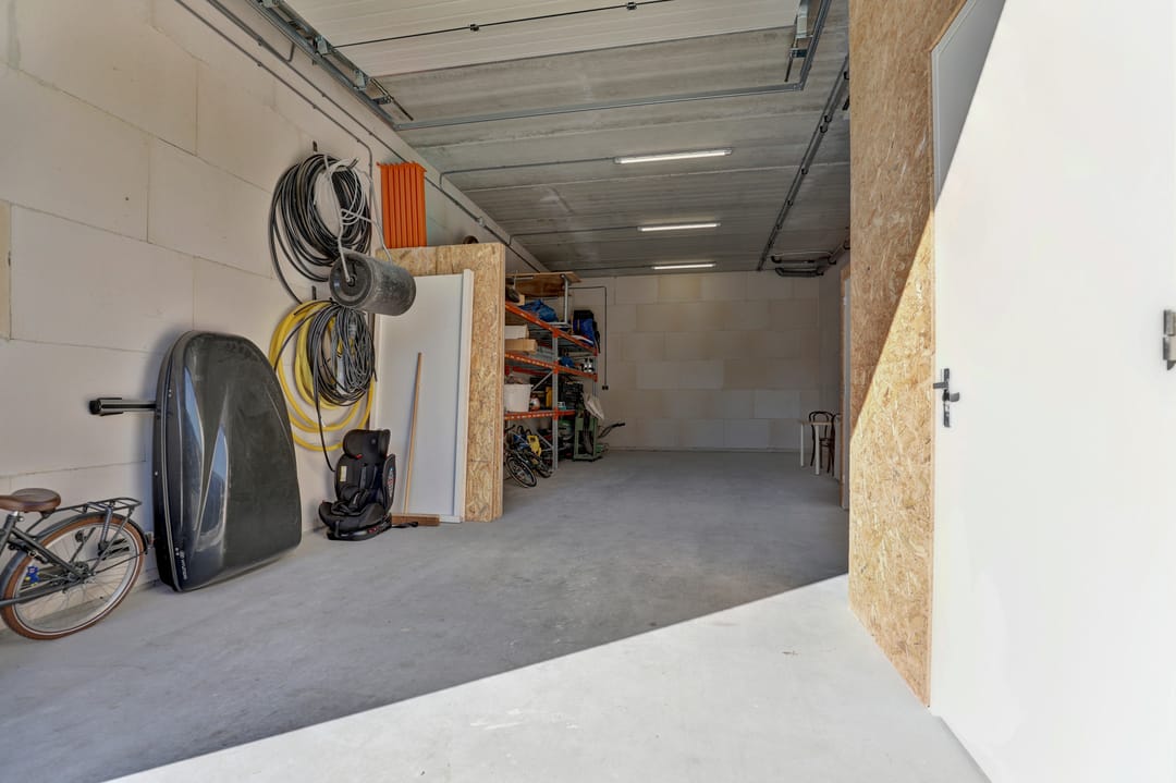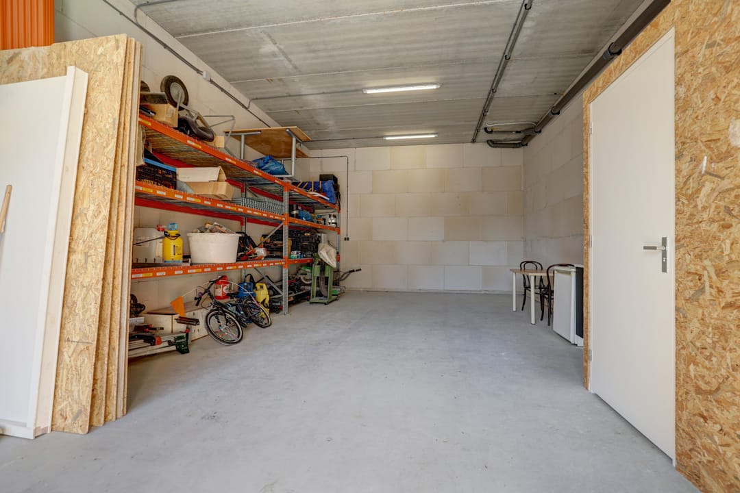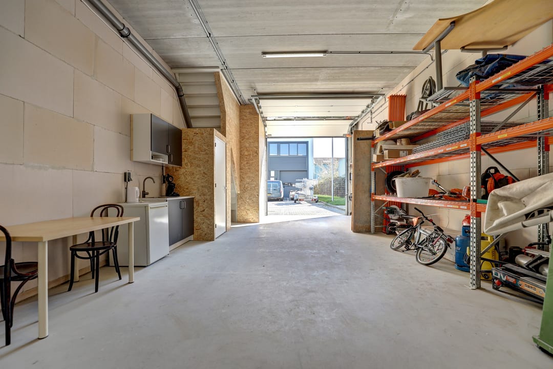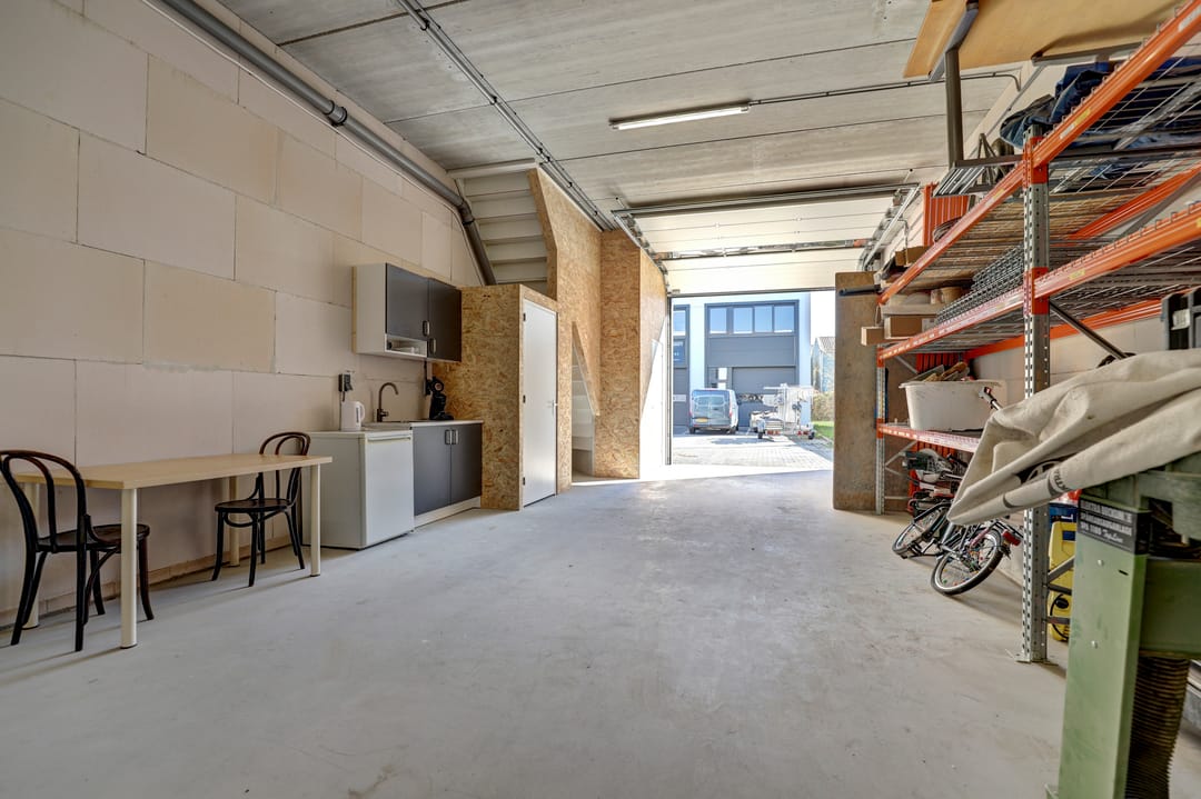 - Overheaddeuren, krachtstroom, betonvloer, heater, toilet, pantry, airconditioning, inbouwarmaturen en te openen ramen
