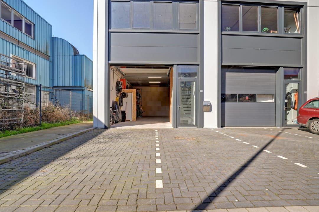 De begane grond is toegankelijk middels een elektrisch bedienbare overheaddeur met afstandsbediening. De verdieping is via een separate entree toegankelijk, waardoor een duidelijke scheiding tussen bedrijfs- en kantoorfunctie mogelijk is. In het pand zijn tussenmeters aanwezig, waarmee het stroomverbruik van de verdieping afzonderlijk kan worden gemeten. Zowel beneden als boven zijn een toilet en pantry/keuken aanwezig. Daarnaast is internetbekabeling door het gehele object aanwezig, passend bij gebruikers met hogere ICT-eisen. Voor de unit zijn twee exclusieve parkeerplaatsen gesitueerd.