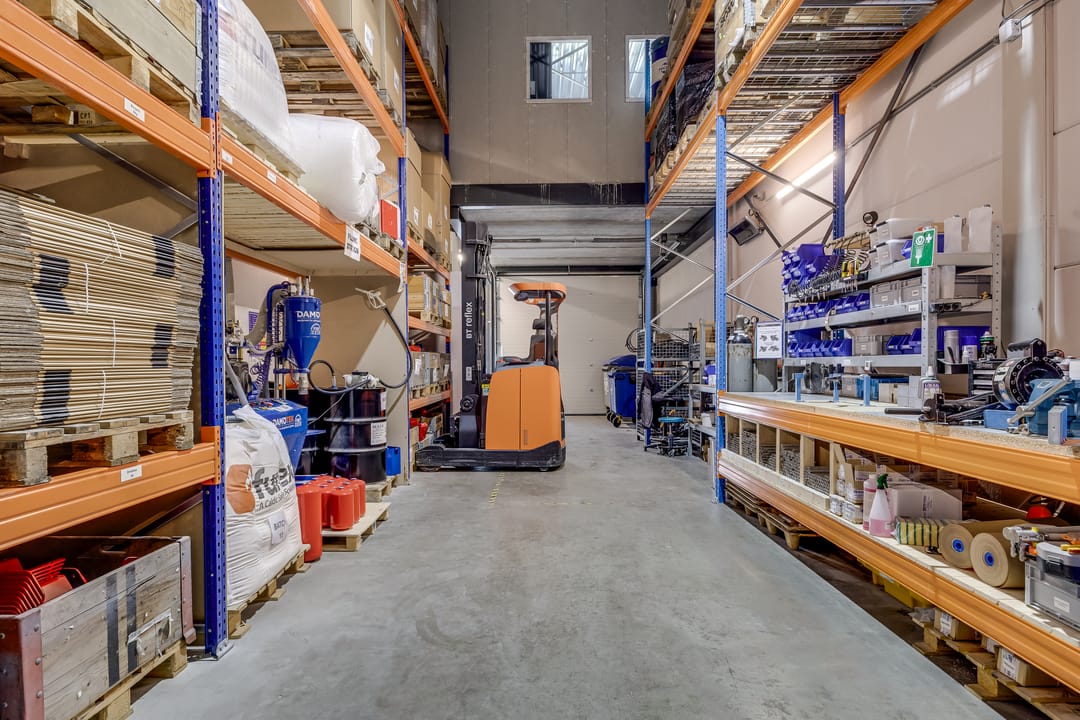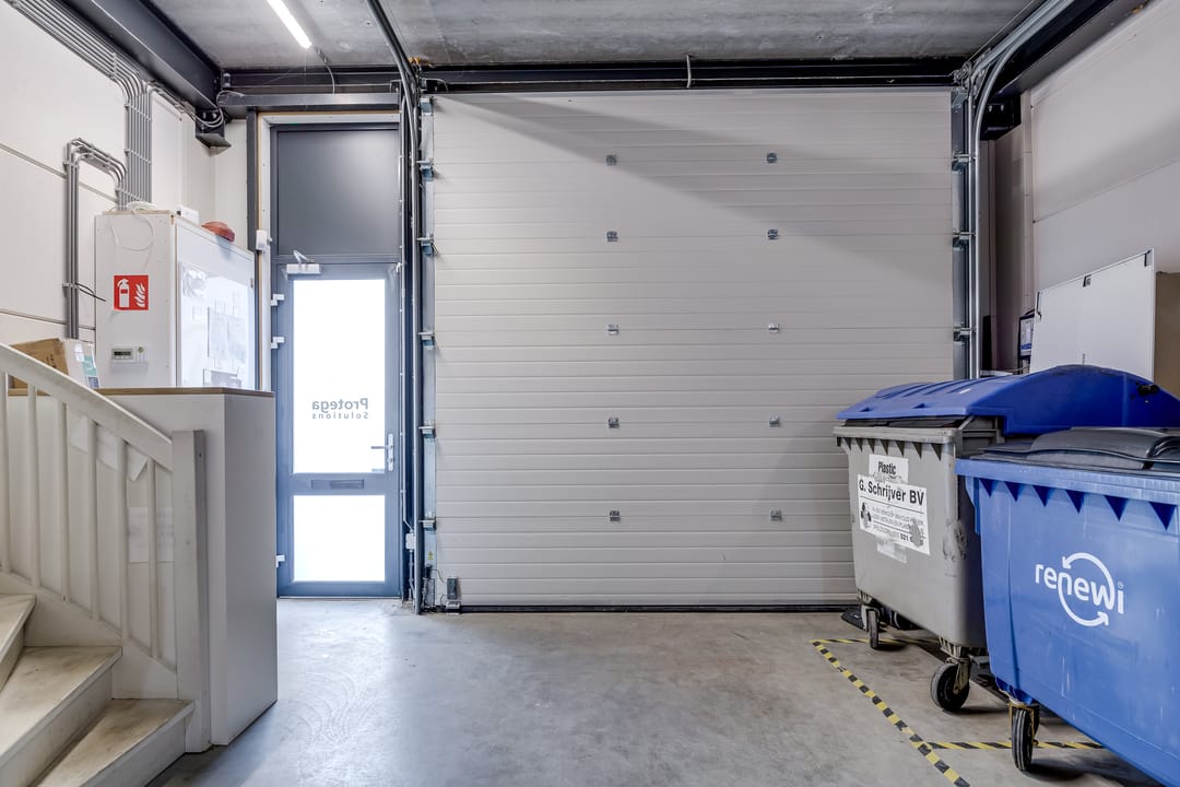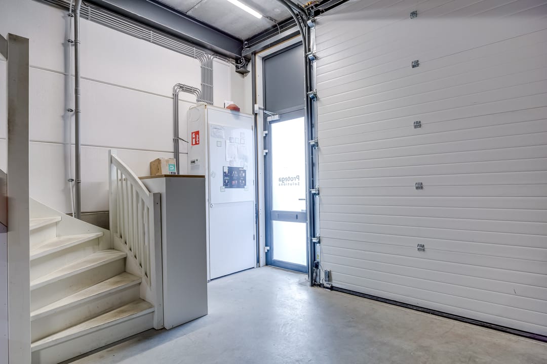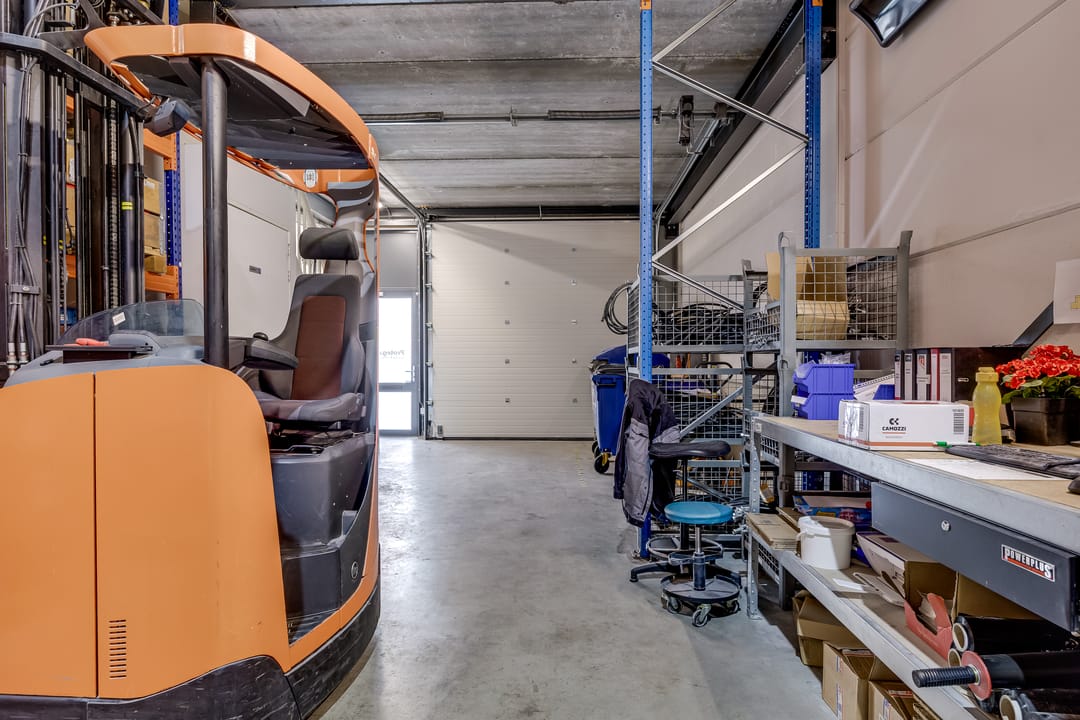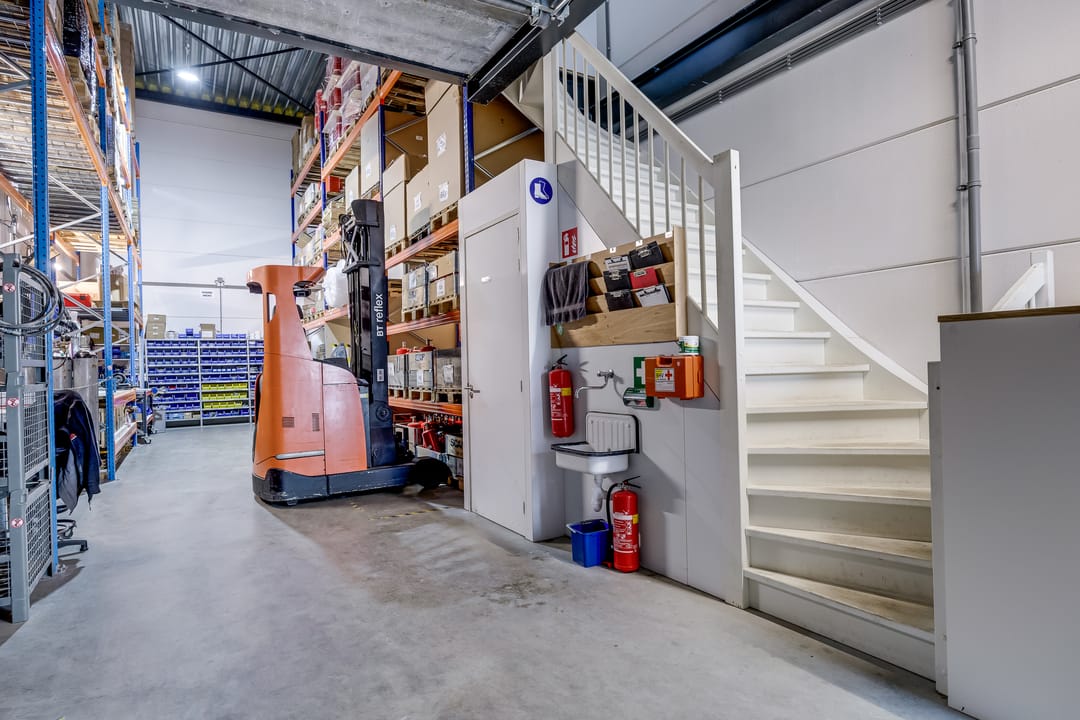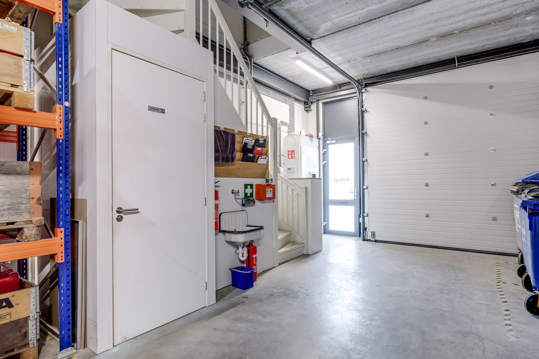 De begane grond biedt een praktische en royale ruimte met een gunstige vrije hoogte, geschikt voor opslag, werkplaats of stellingen. De elektrisch bedienbare overheaddeur en separate loopdeur zorgen voor efficiënt gebruiksgemak, terwijl de gevlinderde betonvloer en aanwezige voorzieningen zoals elektra, toiletruimte en gedeeltelijke infraroodverwarming bijdragen aan een comfortabele werkomgeving. Via een verzorgde houten trappartij bereikt u de verdieping, waar een verzorgde en lichte ruimte is ingericht als kantoor of aanvullende werkplek. Hier zorgen te openen ramen en airco voor zowel verwarmen als koelen voor een aangenaam binnenklimaat. Verder is er een pantry v.v. kastruimte en spoelbak aanwezig en een gedeelde glasvezelaansluiting.