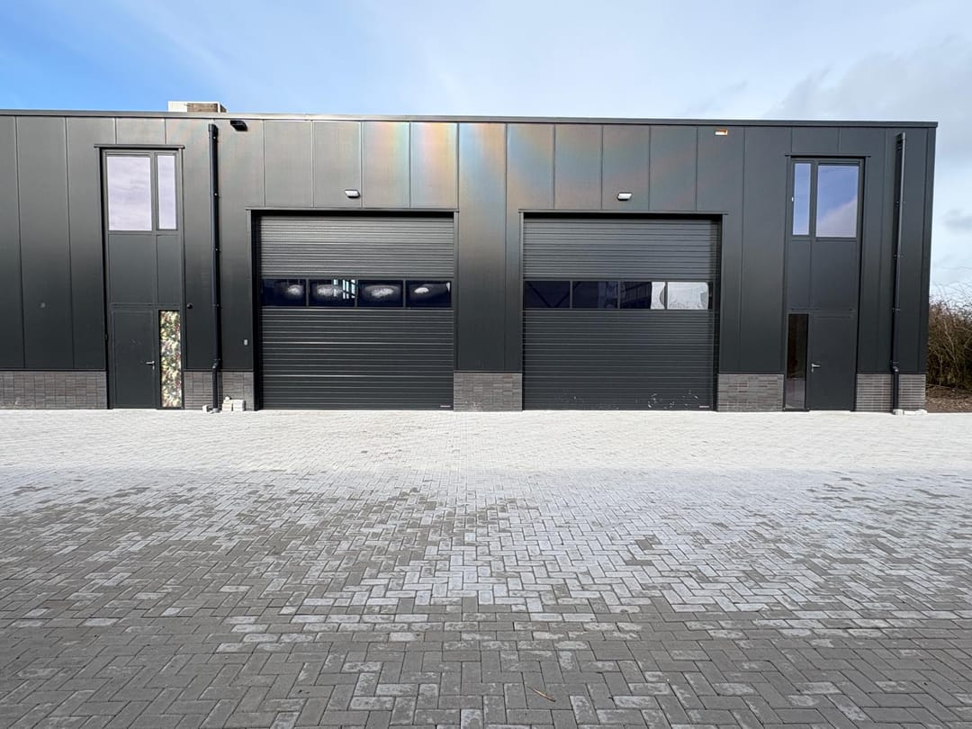 - Mechanische ventilatie, overheaddeuren, krachtstroom, betonvloer, sprinkler, heater, toilet en pantry