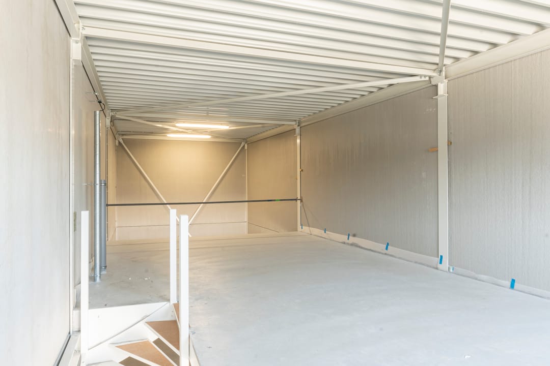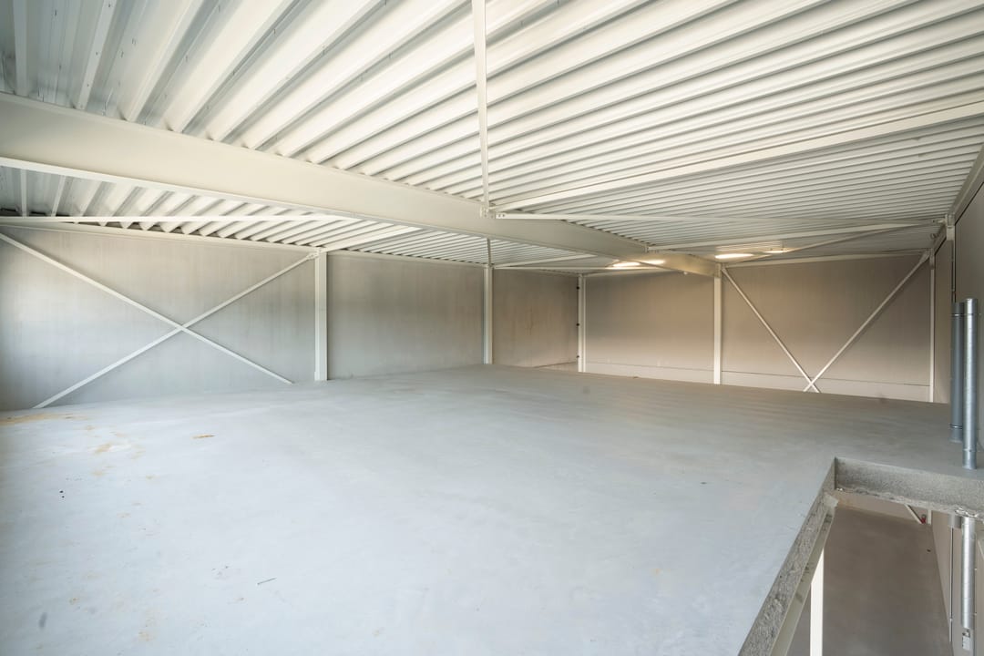 - Overheaddeuren, betonvloer en toilet