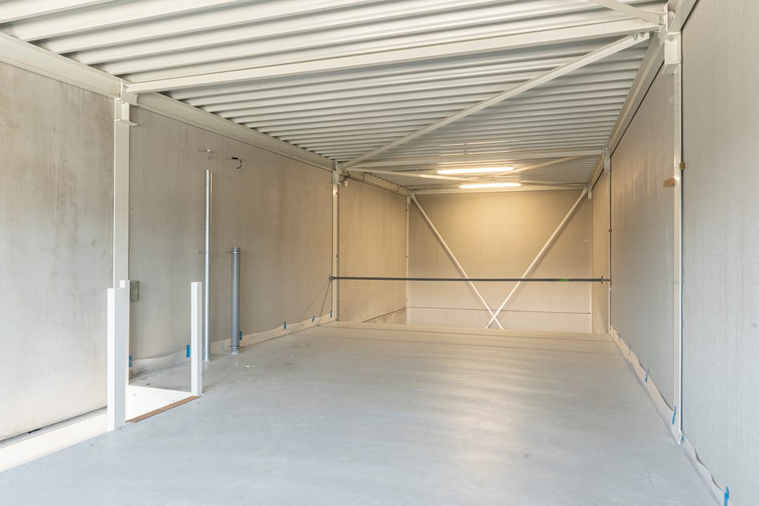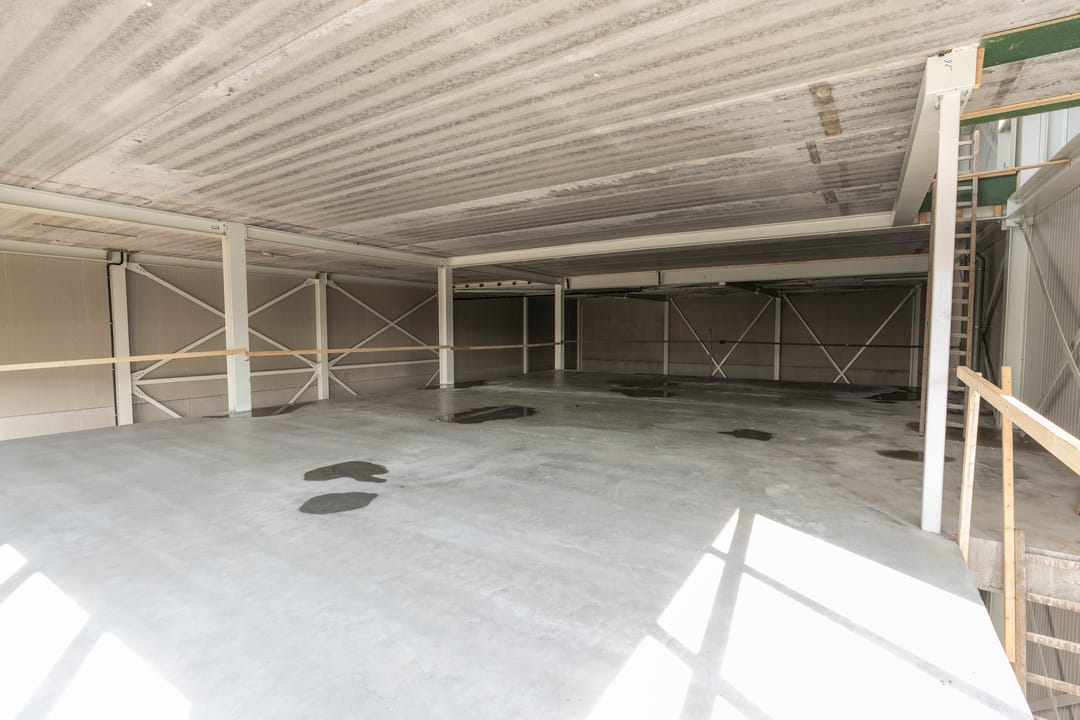- Overheaddeuren, betonvloer en toilet