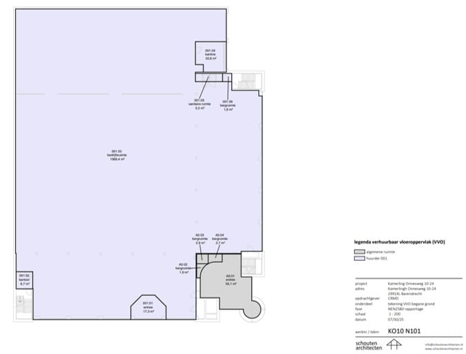 Op de eerste verdieping is er extra ruimte waar je gemakkelijk kantoren, werkplekken of vergaderruimtes kan realiseren. Hierdoor kun je jouw complete bedrijfsvoering centraliseren onder één dak, wat de samenwerking en communicatie tussen verschillende teams enorm ten goede komt. Voor de kantoorruimte wordt een voorschot in rekening gebracht van € 30,00 per m² per jaar, te vermeerderen met BTW.