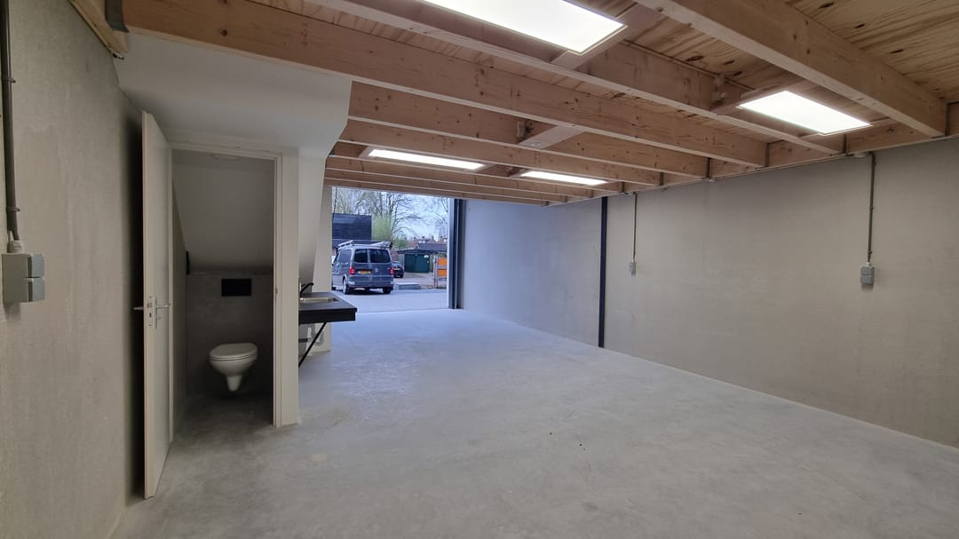 • Begane grond (ca. 58 m²): bedrijfsruimte met elektrische overheaddeur