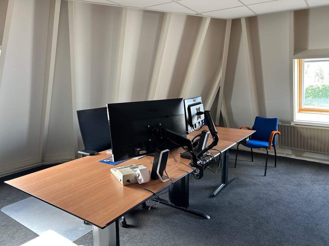 Het object beschikt over representatieve kantoorruimte op de begane grond (ca. 96,5 m²) en op de verdieping (ca. 73,8 m²), geschikt voor meerdere werkplekken en ondersteunende functies.