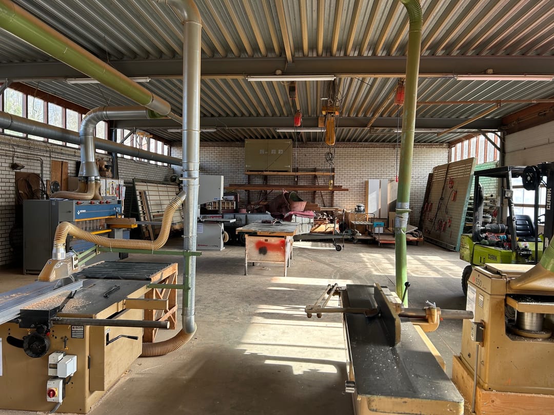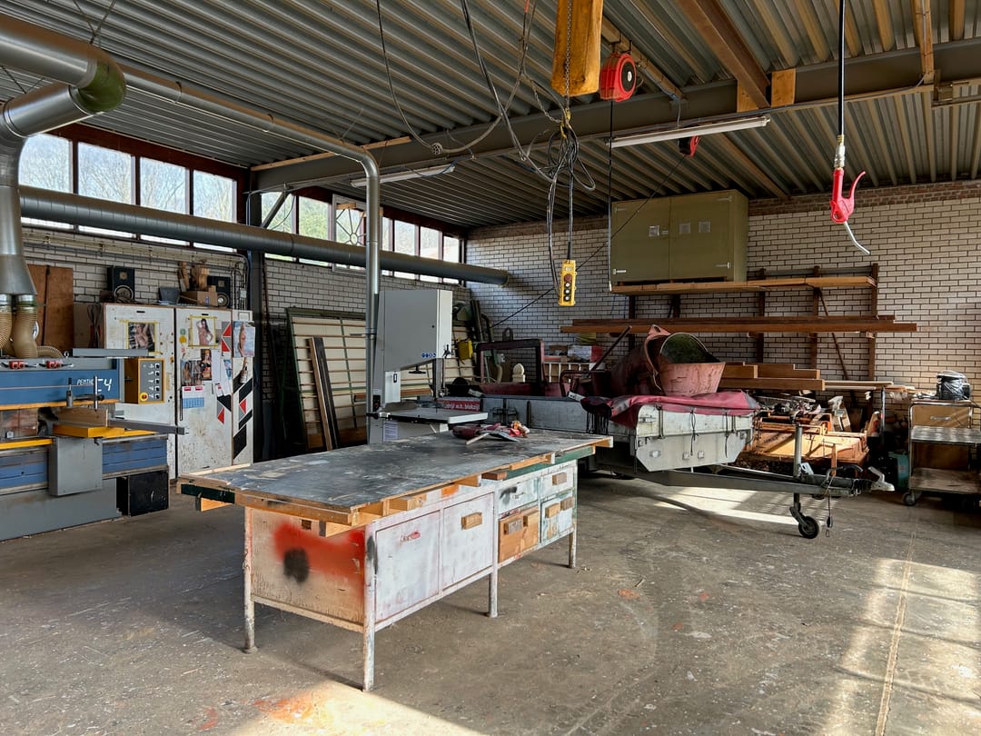 De ruime werkplaats (ca. 299 m²) is voorzien van een betonvloer en overheaddeur, wat zorgt voor efficiënte laad- en losmogelijkheden. Daarnaast is er een kapschuur (ca. 225 m²) aanwezig en een loods (ca. 377m²) met klinkerverharding en een kraan, ideaal voor opslag en zwaardere werkzaamheden.