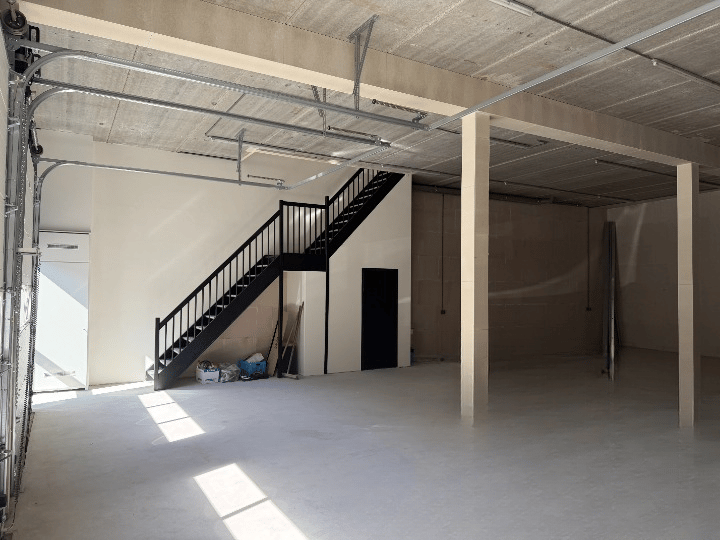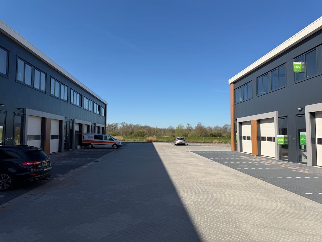 - Overheaddeuren, krachtstroom, betonvloer, toilet, pantry en airconditioning