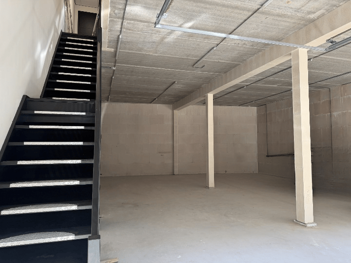 De toegang van het pand is op de begane grond via de twee overheaddeuren of separate toegangsdeur. Het betreft een open bedrijfsruimte met toilet onder de trap met een oppervlakte van ca. 161 m².