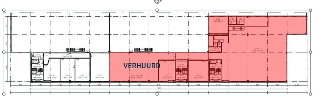 De totaal verhuurbare oppervlakte van de beschikbare ruimte bedraagt ca. 3.291 m ², als volgt verdeeld: