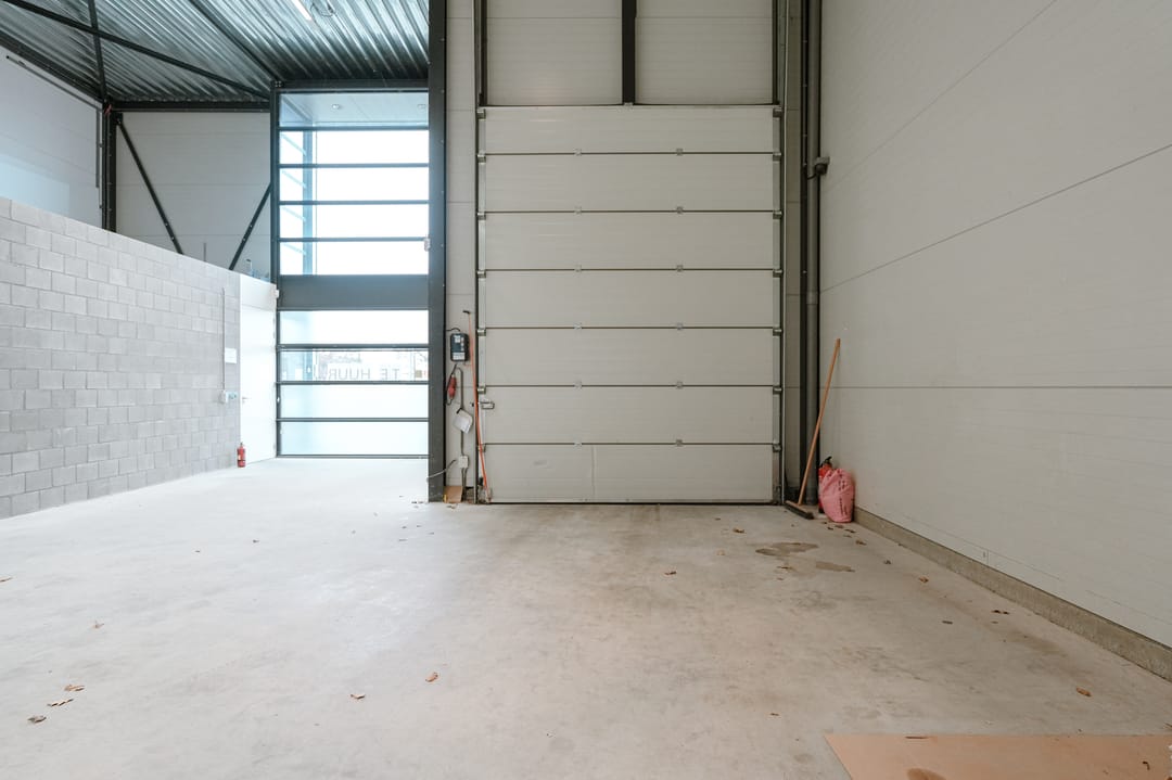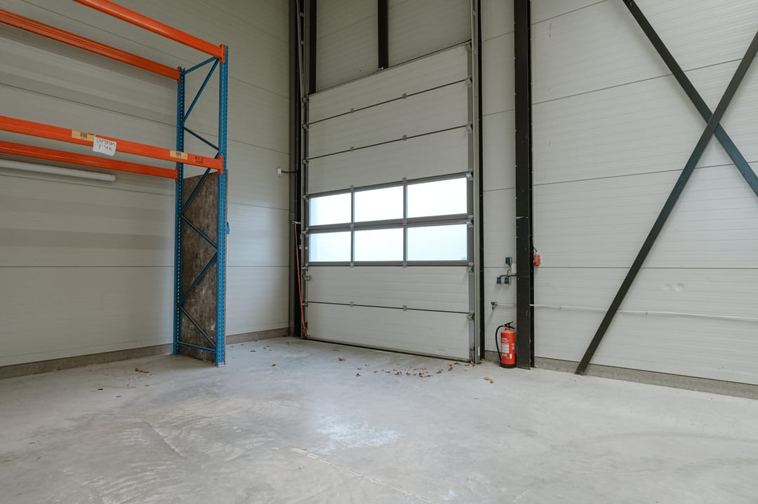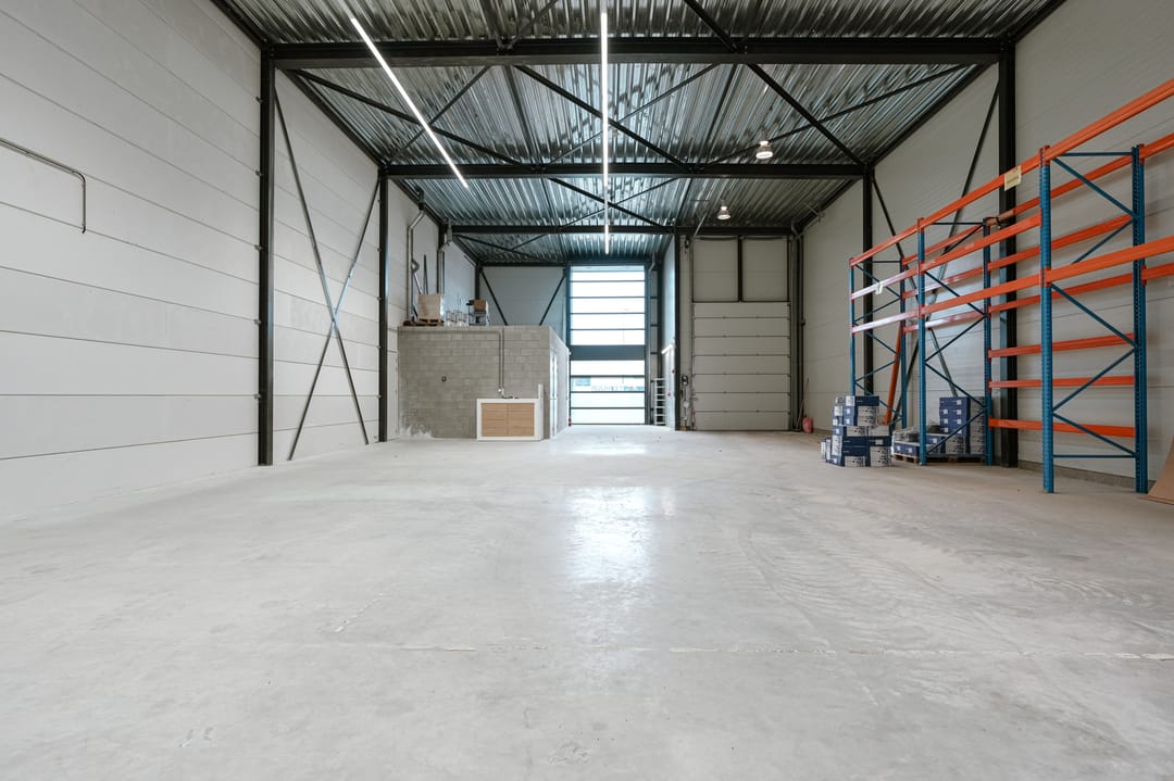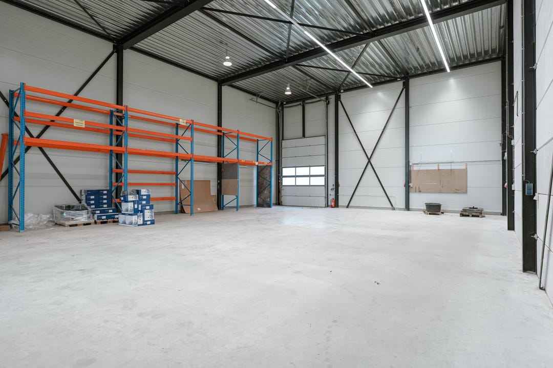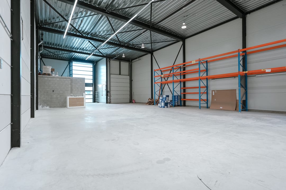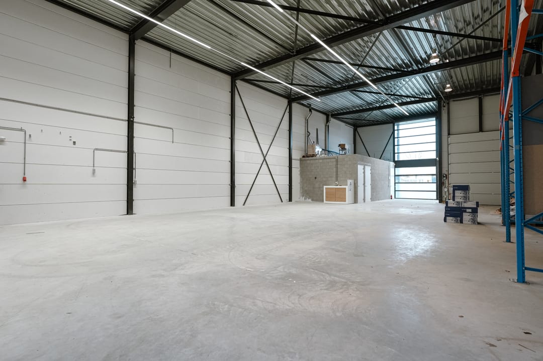 - Overheaddeuren, krachtstroom, betonvloer, toilet, pantry, mechanische ventilatie, inbouwarmaturen en te openen ramen