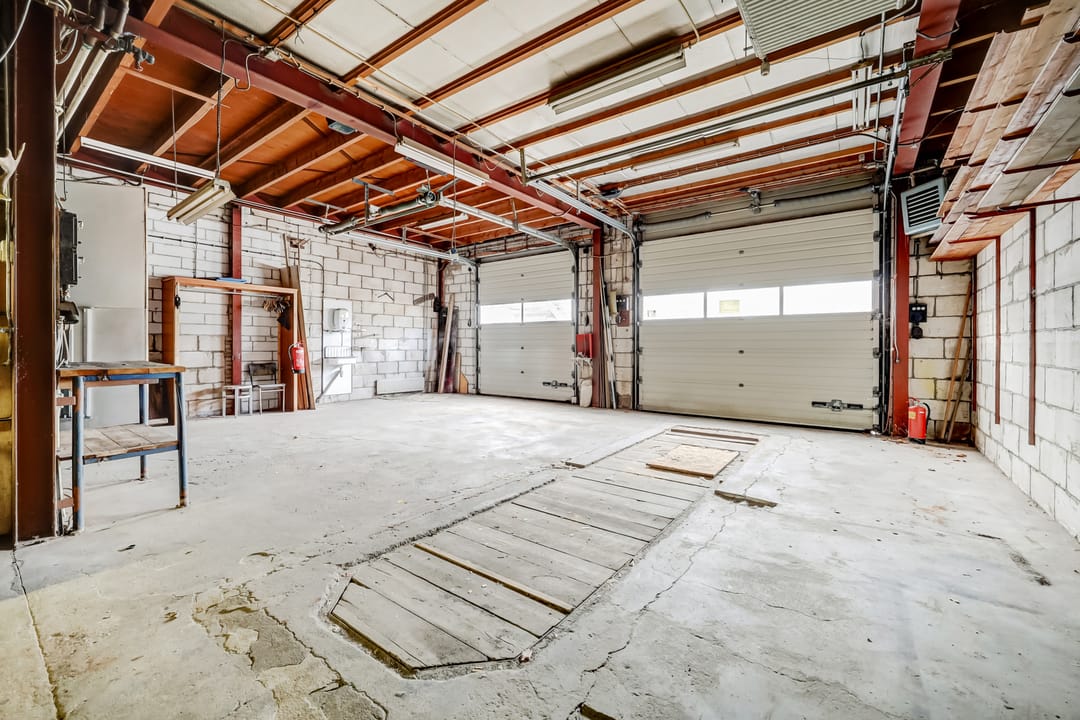 - Overheaddeuren, betonvloer en toilet