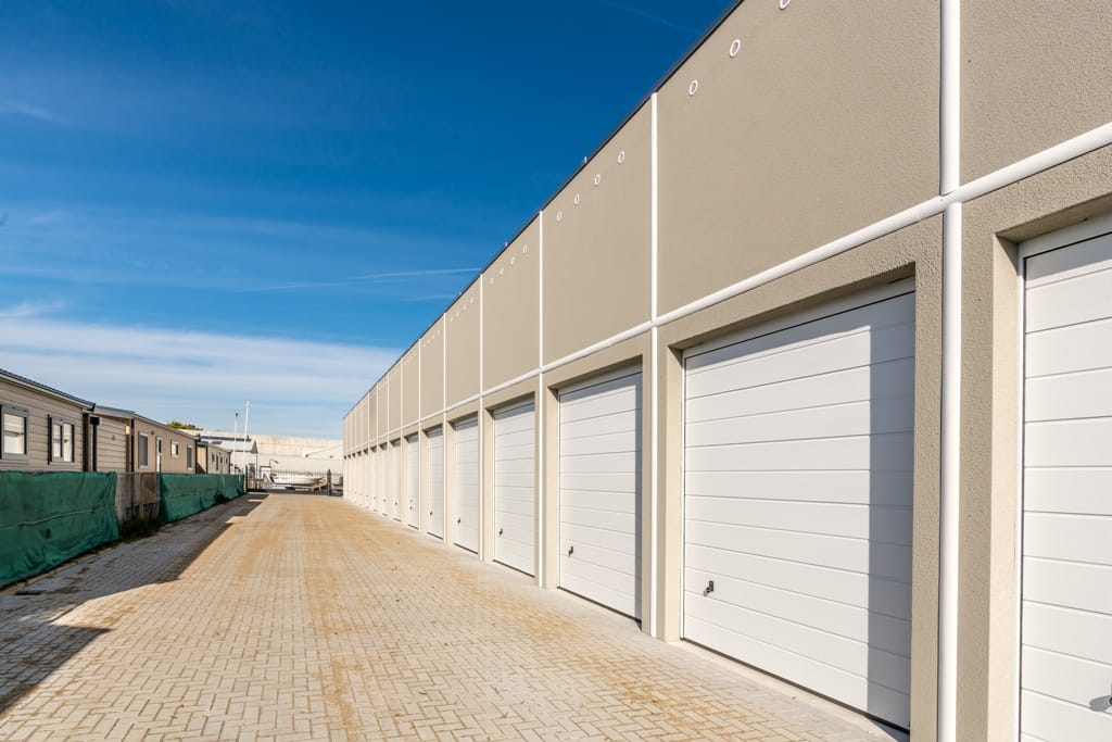 Daarnaast zijn er op het terrein verschillende voorzieningen, zoals een afgesloten hek met een elektrische schuifpoort die u via uw smartphone kunt openen. Er is 24/7 camerabewaking, in elke box is stroom en verlichting aanwezig, en in de gezamenlijke technische ruimte vindt u een toilet en een gootsteen.