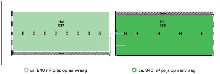 Prijs 2 grote bedrijfsruimten op aanvraag.