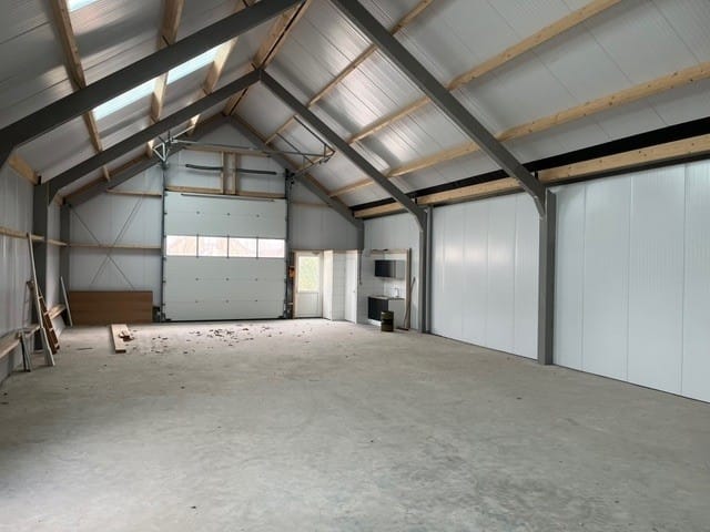 - Overheaddeuren, betonvloer, toilet en pantry