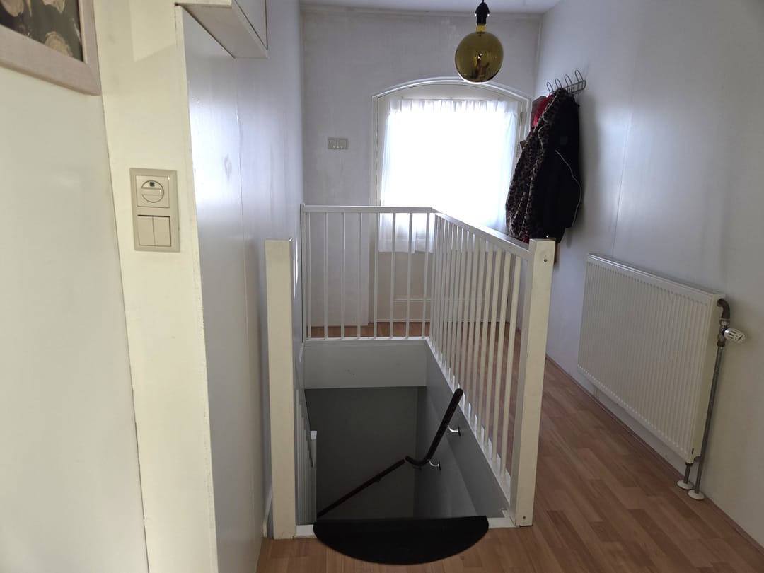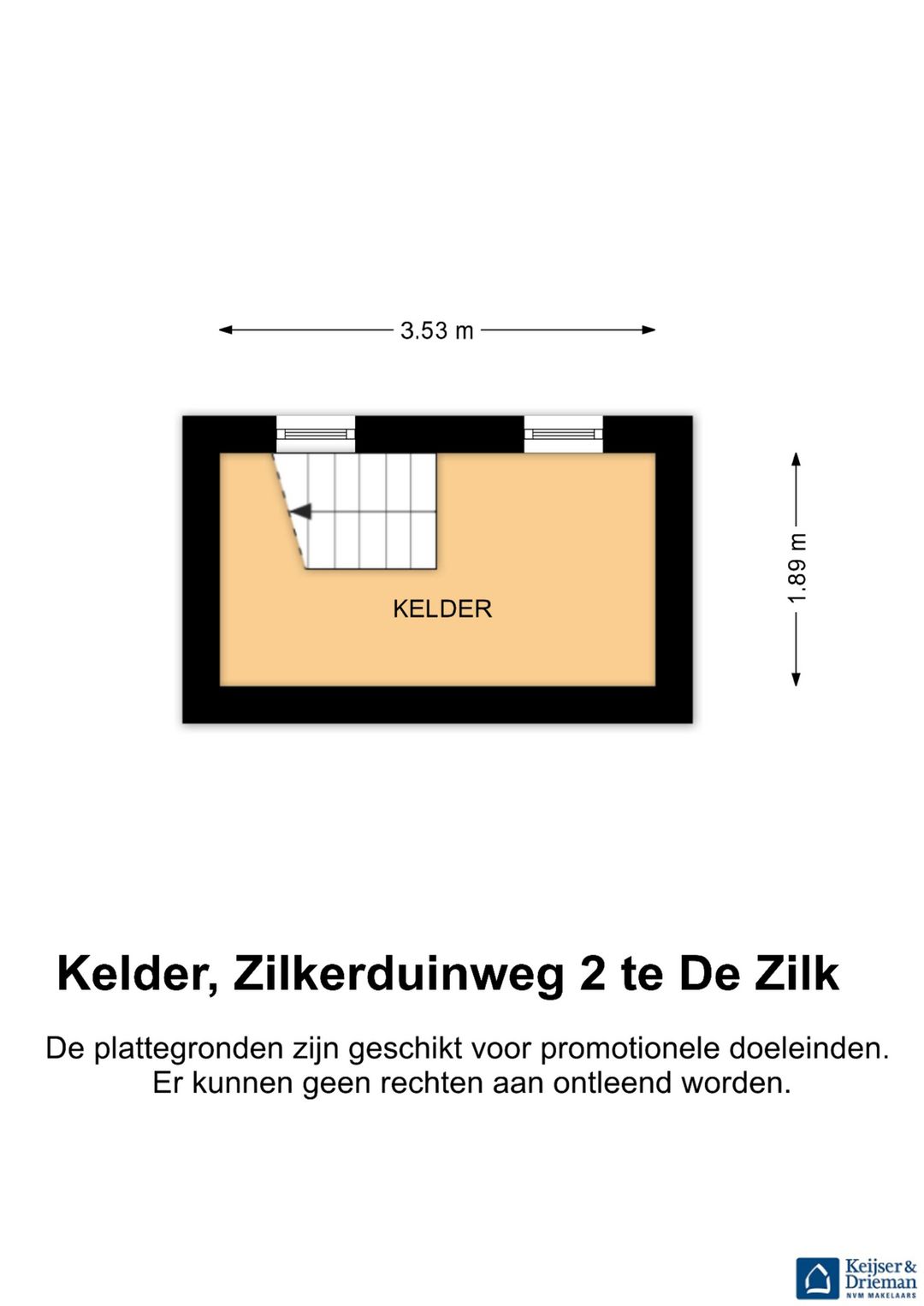 Kelder: via vaste trap bereikbare kelder(ca. 3.55x1.90m) voor opslag, met een hoogte van ca. 1.90m en 2 ramen.