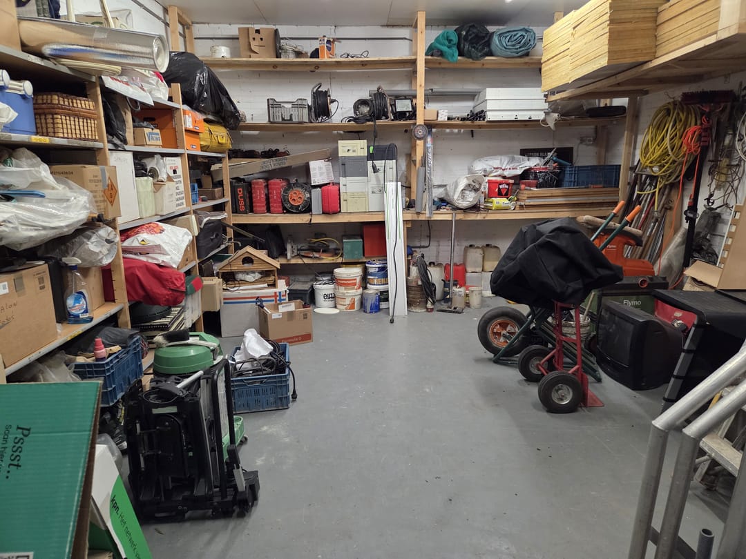 Vliering: middels luik in de slaapkamer toegankelijke bergvlierging.