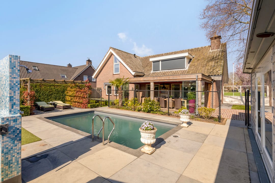 Wonen en werken op één plek met veel comfort en ruimte om te genieten. Op een riant perceel van circa 1.500 m2 staat deze vrijstaande bedrijfswoning met maar liefst 203 m2 woonoppervlakte, een grote bedrijfsruimte van 226 m2 met diepe afsluitbare oprit én een fraai aangelegde tuin met zwembad en zelfs een eigen café. Een bijzonder geheel waar functionaliteit en woonplezier op unieke wijze samenkomen.