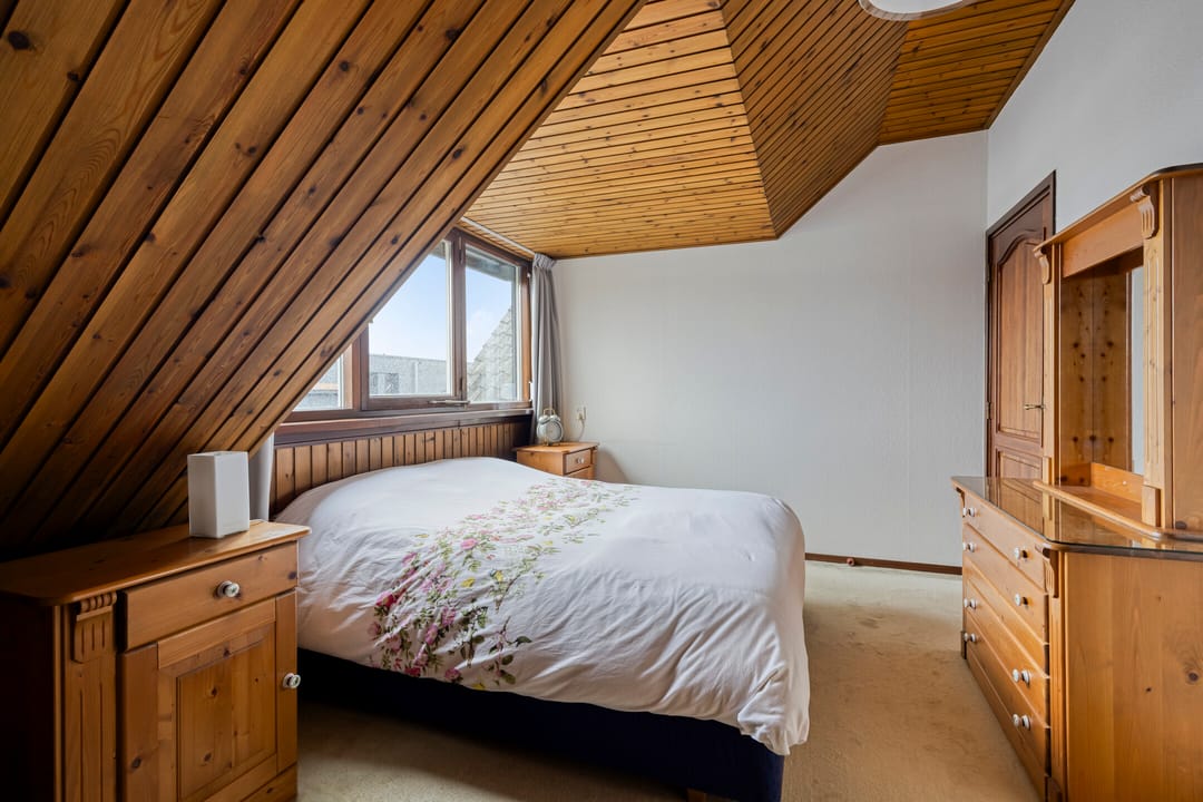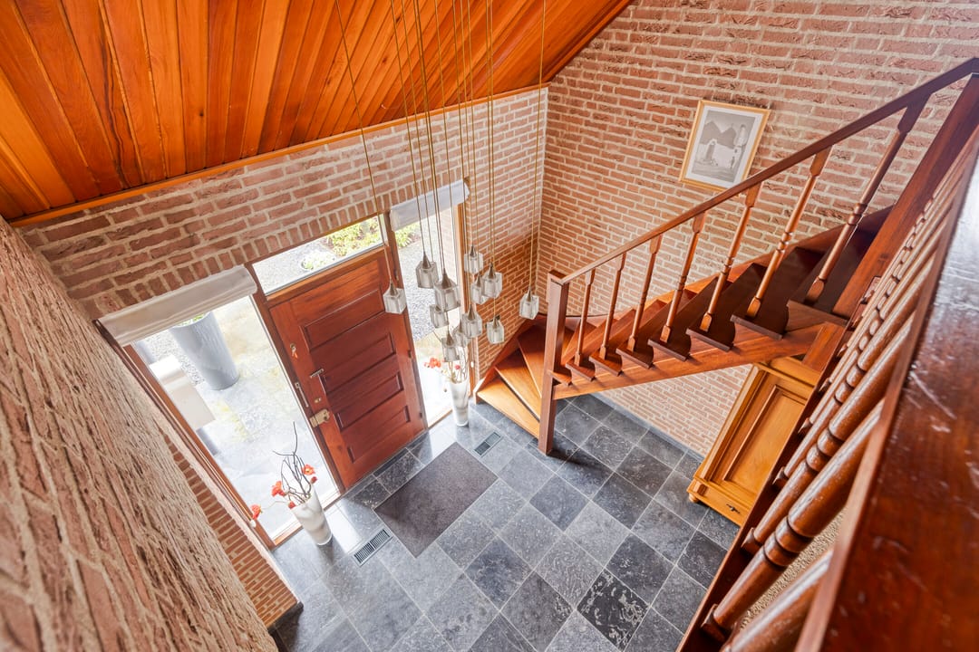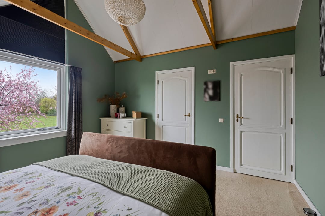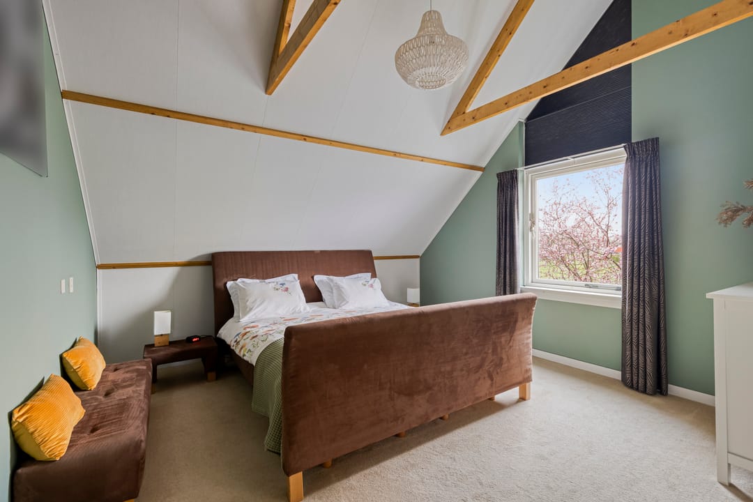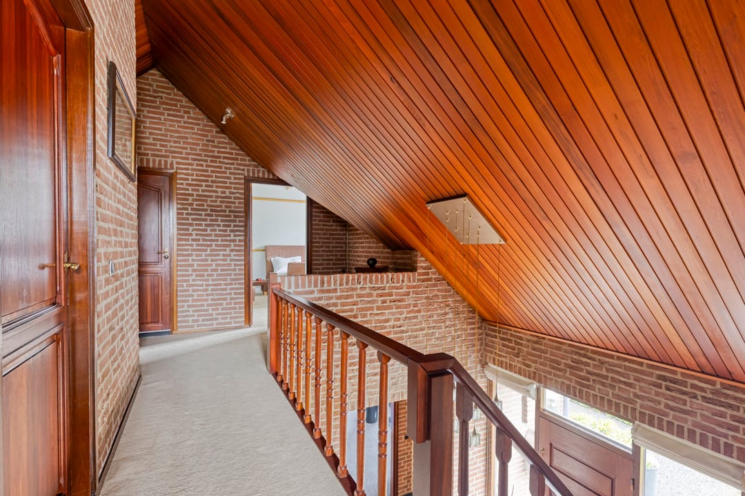 Ruime overloop met mooi zicht naar de hal en aansluitend toegang tot vijf volwaardige slaapkamers. De hoofdslaapkamer beschikt over een inloopkast en kijkt aan de voorzijde prachtig weg over de natuur. Twee slaapkamers beschikken over bergruimte in de dakschuinte en de andere twee over een dakkapel. De moderne badkamer is ingericht met een ligbad, breed wastafelmeubel met twee waskommen, inloopdouche en een zwevend toilet.