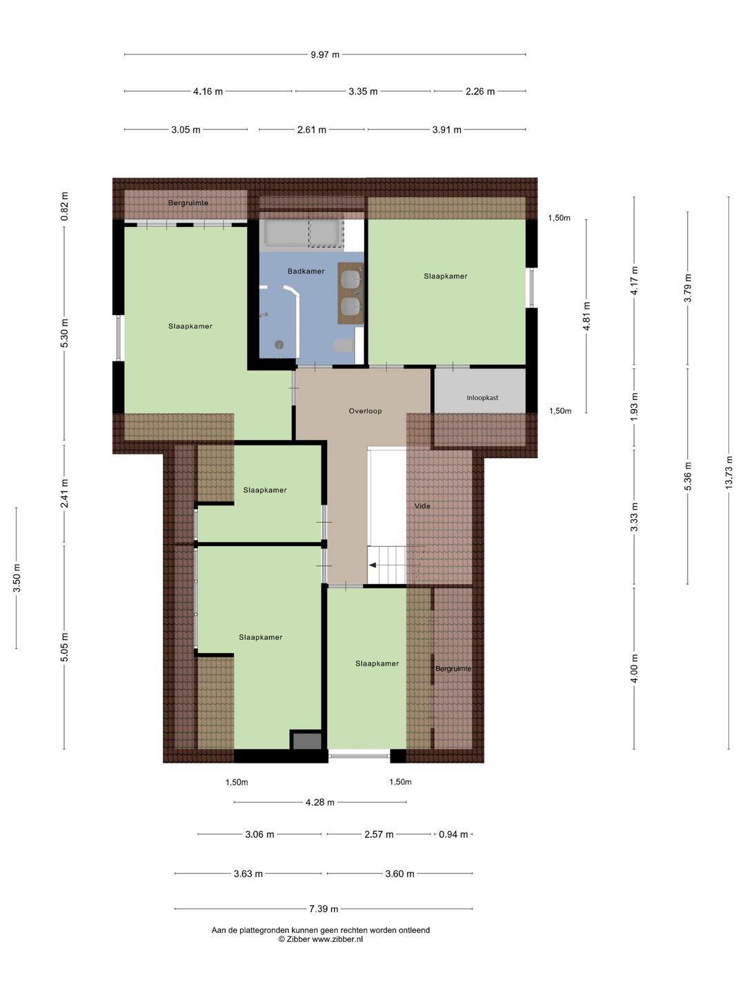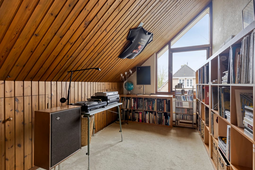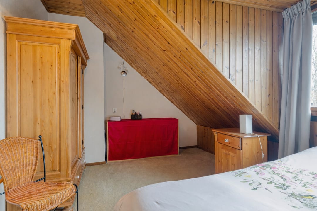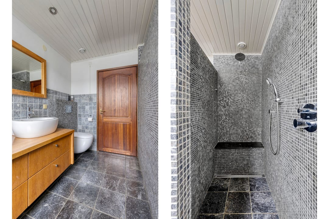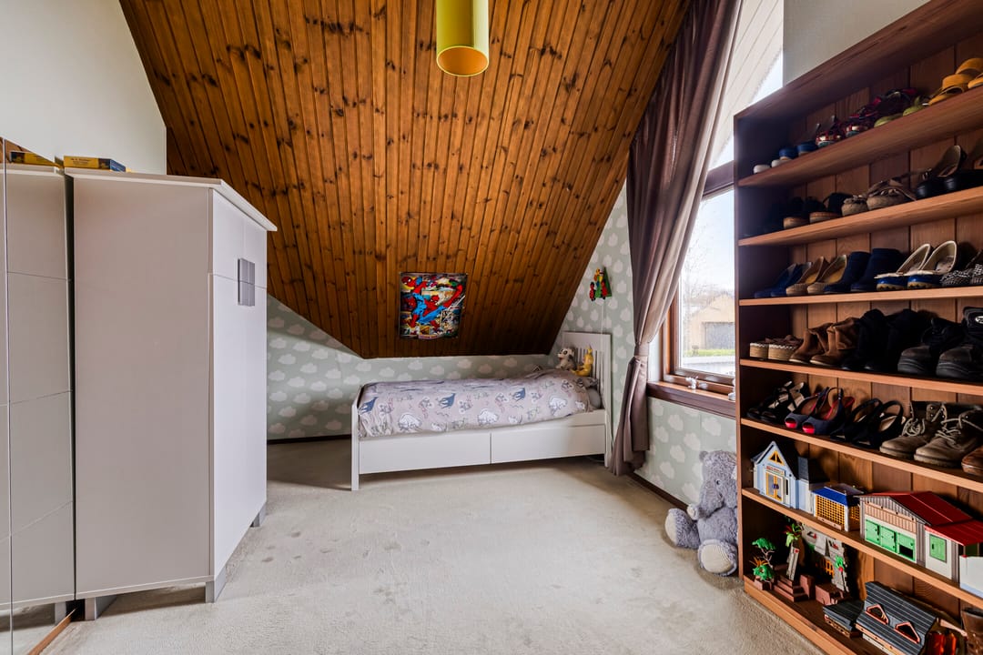 Ruime overloop met mooi zicht naar de hal en aansluitend toegang tot vijf volwaardige slaapkamers. De hoofdslaapkamer beschikt over een inloopkast en kijkt aan de voorzijde prachtig weg over de natuur. Twee slaapkamers beschikken over bergruimte in de dakschuinte en de andere twee over een dakkapel. De moderne badkamer is ingericht met een ligbad, breed wastafelmeubel met twee waskommen, inloopdouche en een zwevend toilet.