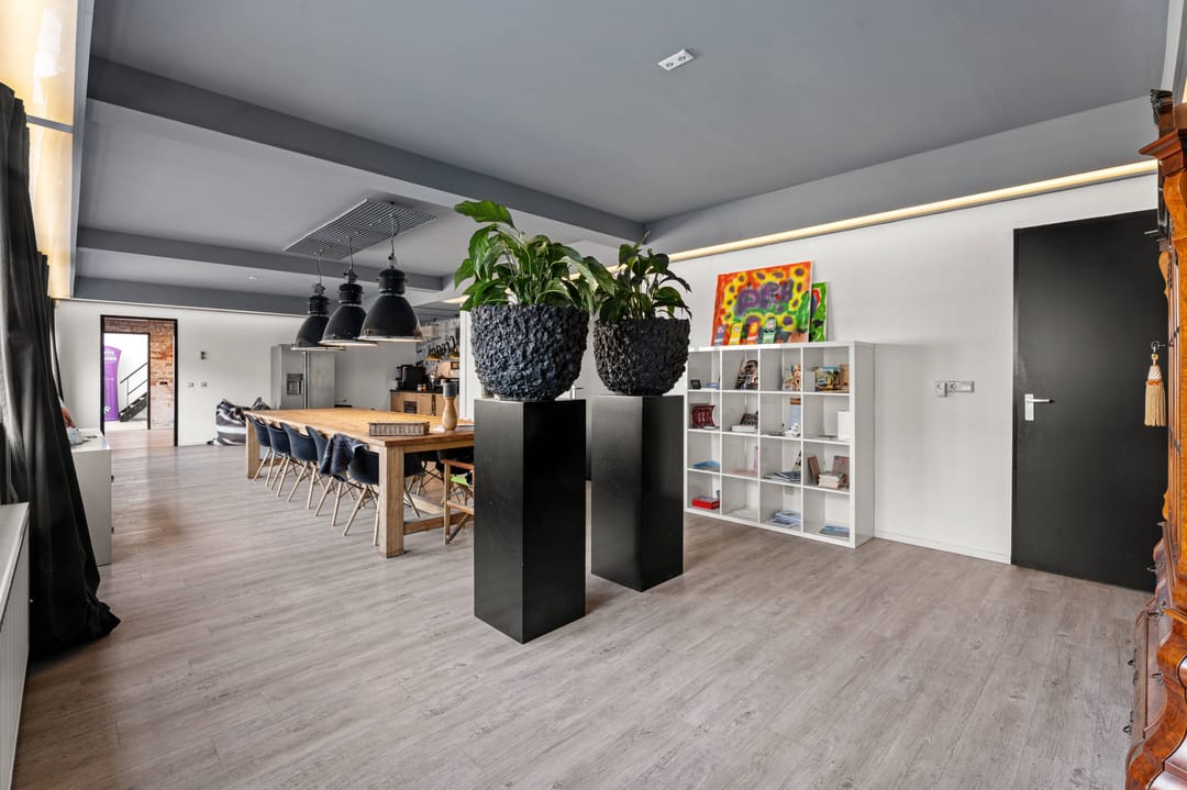 - 2 elektrisch bedienbare overheaddeuren waarvan 1 voorzien is van een houten raamkozijn.