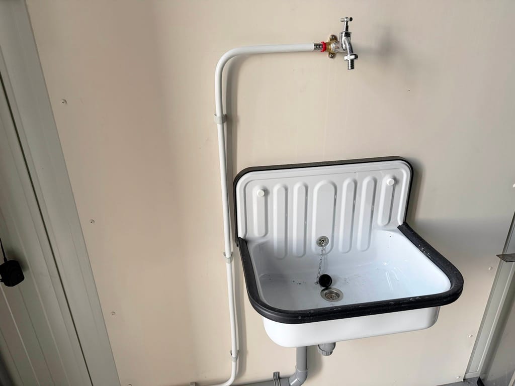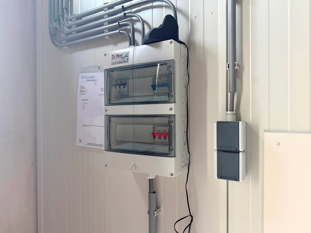 De unit heeft elektra en water door middel van tussenmeters en een eigen rioolaansluiting.