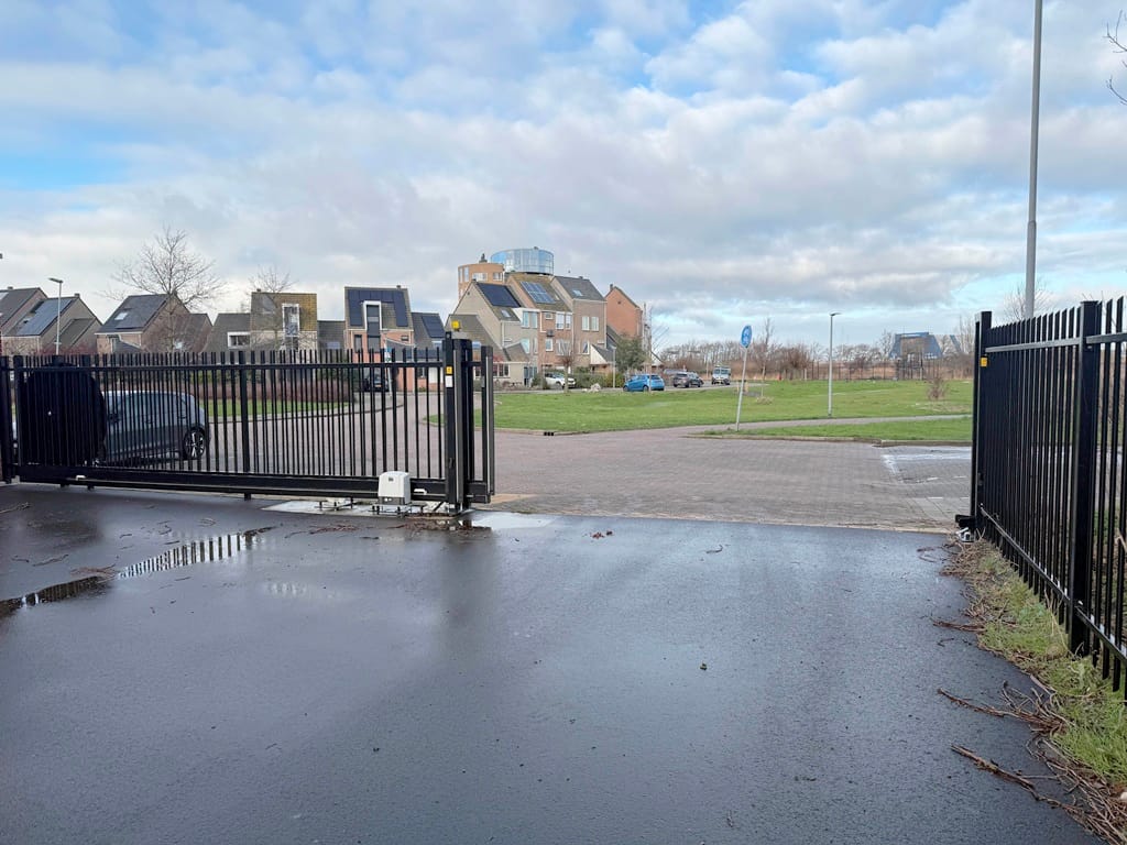 Het buitenterrein heeft een hekwerk en een elektrische schuifpoort(op afstand te bedienen, door te bellen).