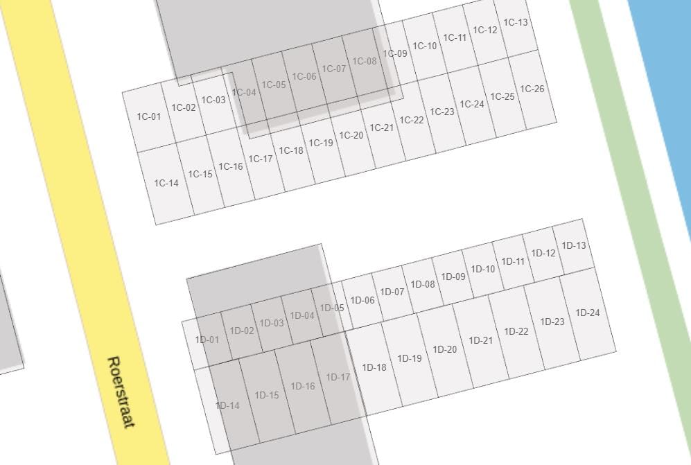 Er zijn in totaal 12 bedrijfsruimtes van type 13 beschikbaar. Alle ruimtes hebben 2 eigen parkeerplaatsen. De bedrijfsruimtes zijn luxueus afgewerkt met grote raampartijen en een elektrisch bedienbare overheaddeur.