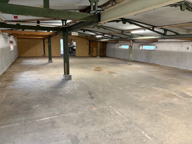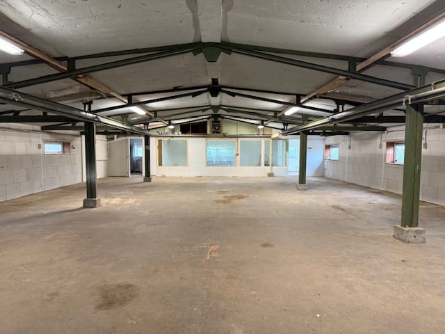Door middel van de inrijdeur aan de achterzijde kom je in de open ruimte met een afmeting van circa 22 bij 11 meter.