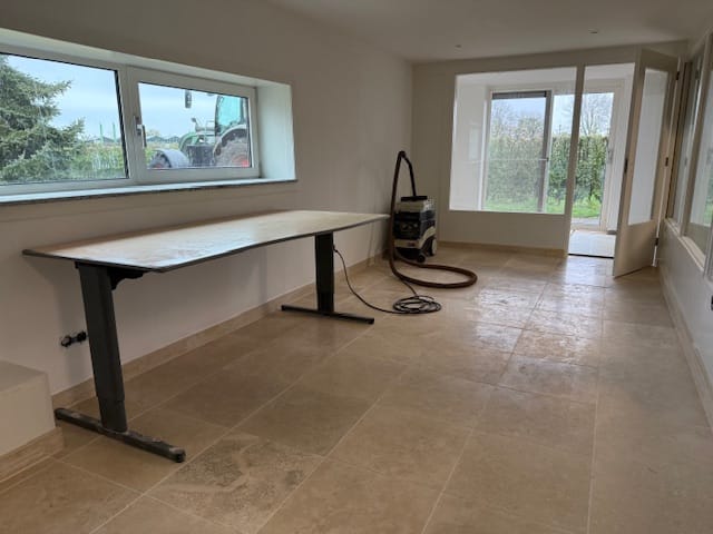 Het inpandige kantoor is bereikbaar via een schuifpui.