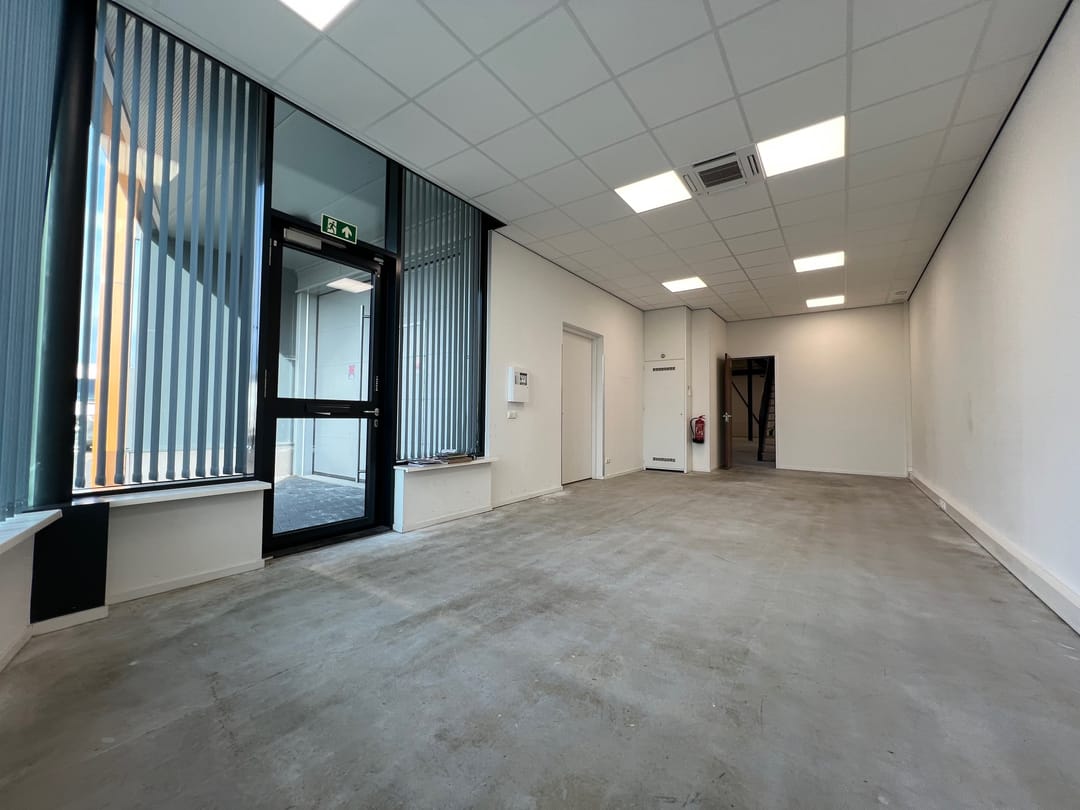 De bedrijfs-/kantoorruimte is volledig uitgevoerd in twee bouwlagen. Op zowel de begane grond als op de verdieping is aan de voorzijde een kantoorruimte gerealiseerd. De ruimte achter de kantoren is multifunctioneel van opzet en kan worden ingericht als leslokaal, bedrijfsruimte, showroom of vergaderruimte. Door middel van de ramen in de zijgevel, alsmede een extra entree in de zijgevel beschikt de bedrijfs-/kantoorruimte over extra daglichttoetreding.