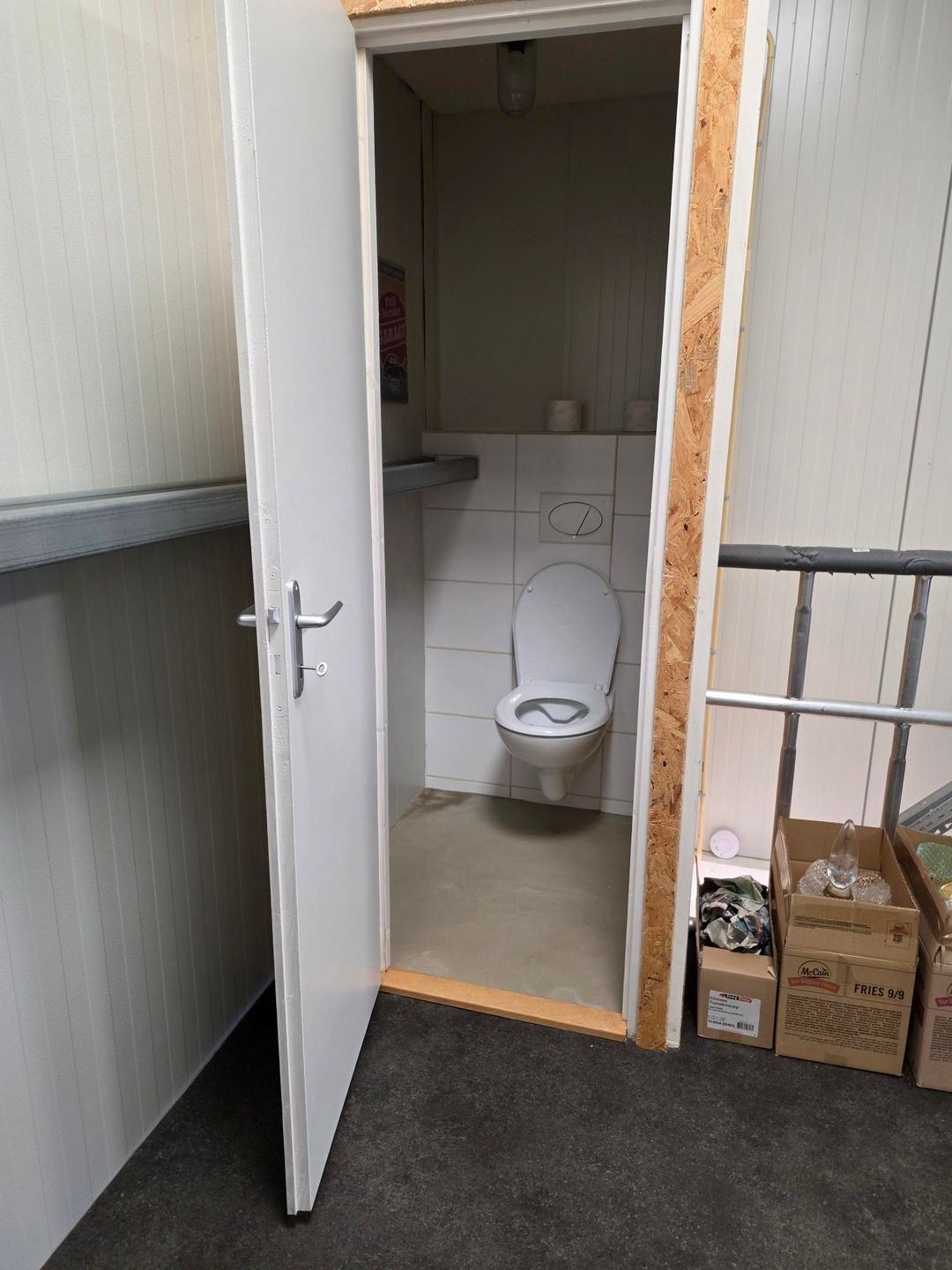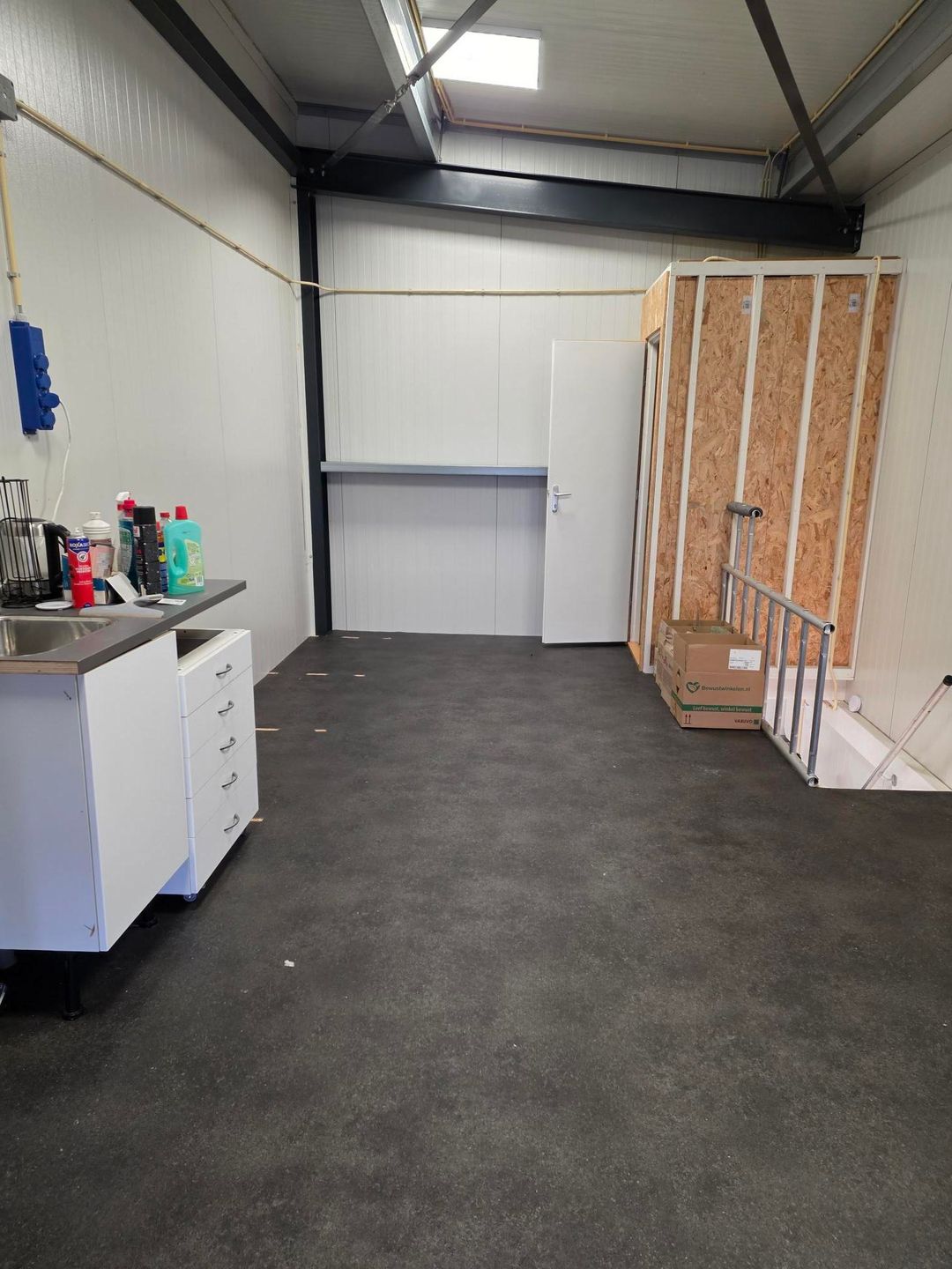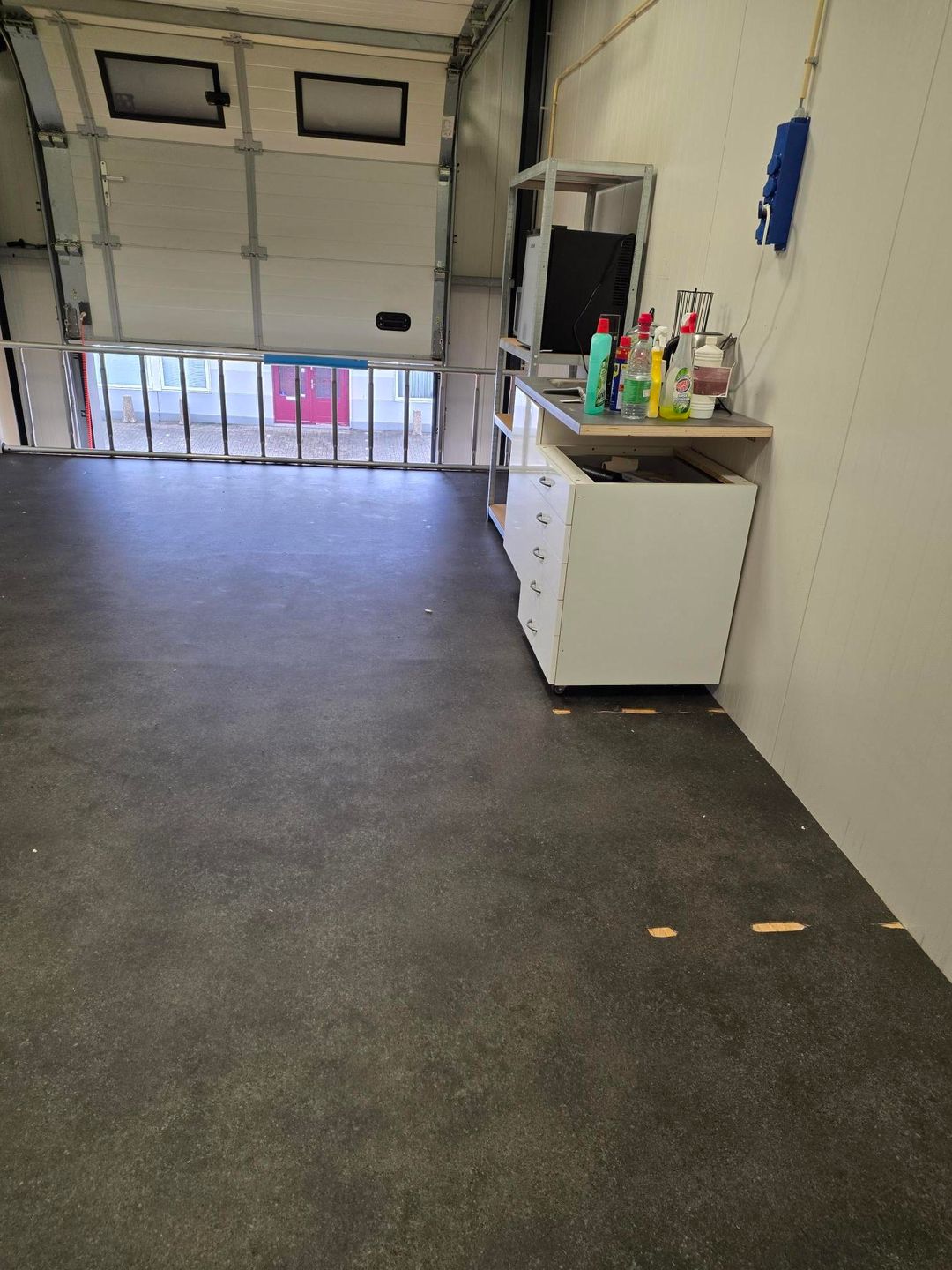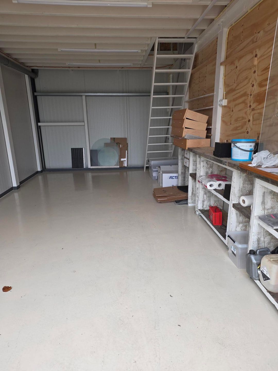 - Overheaddeuren, betonvloer, toilet en pantry