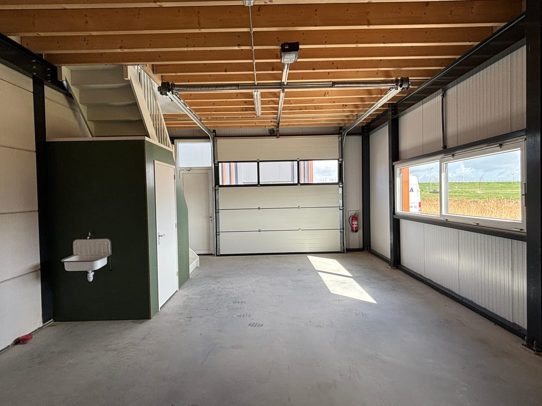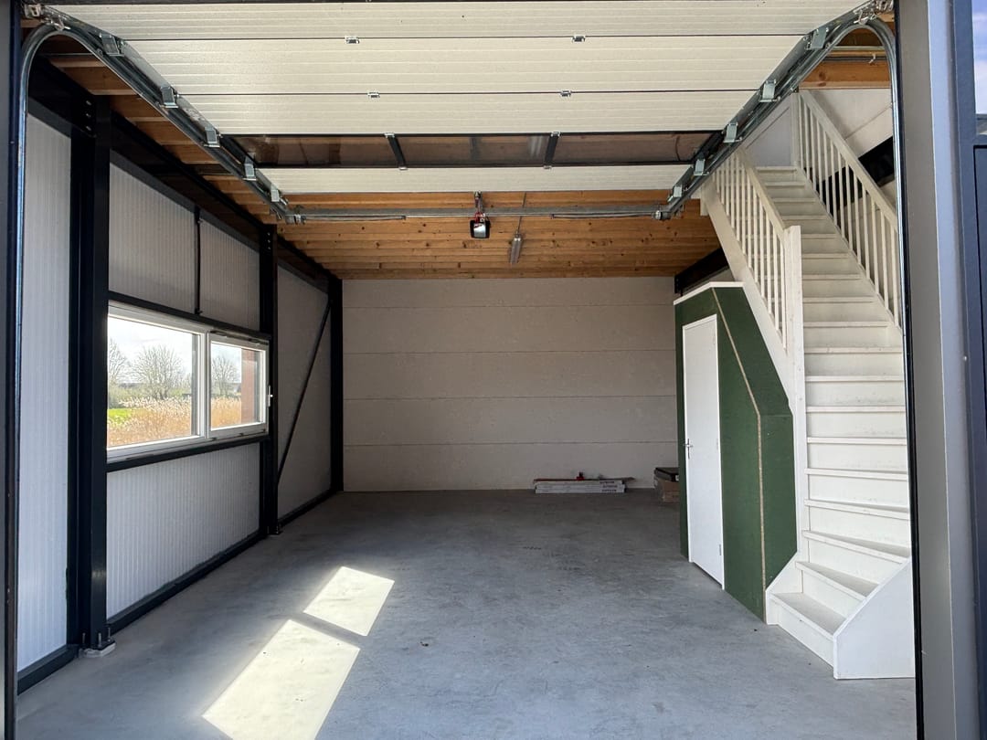 - Overheaddeuren, krachtstroom, betonvloer, toilet, pantry en te openen ramen