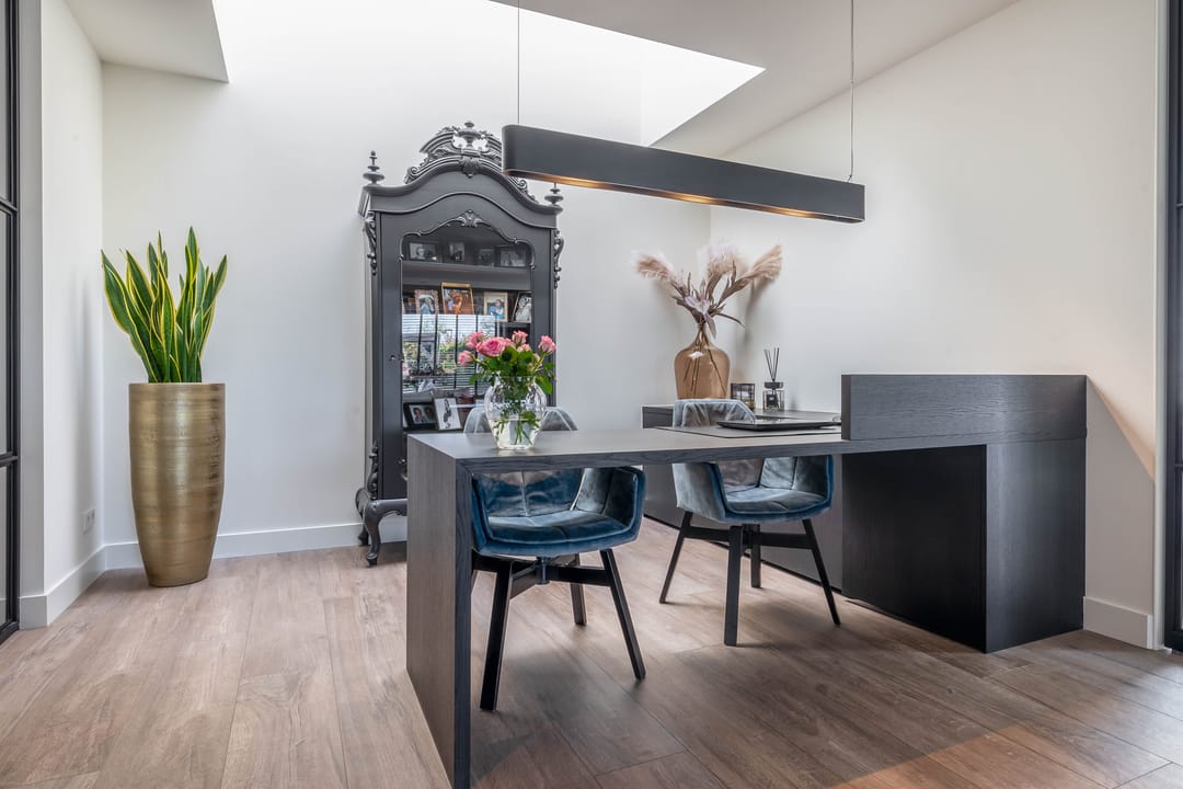 Op Park Forum Zuid een woon-werkobject met totaal 916 m² bruikbaar vloeroppervlakte. Het woon-werkobject ligt direct aaneengesloten met de villawijk “Waterwijk” in Meerhoven. Het is een uniek, luxueus vrijstaand woonhuis met bedrijfsruimte verdeeld over twee lagen. Het betreft een geregistreerd geheel met twee huisnummers: Park Forum 262 is de woning en Park Forum 260 het bedrijfsdeel. Het perceel van bijna 1400 m2 biedt ruim voldoende parkeergelegenheid op eigen terrein en beschikt over een fraai aangelegde achtertuin met groot verwarmd zwembad.